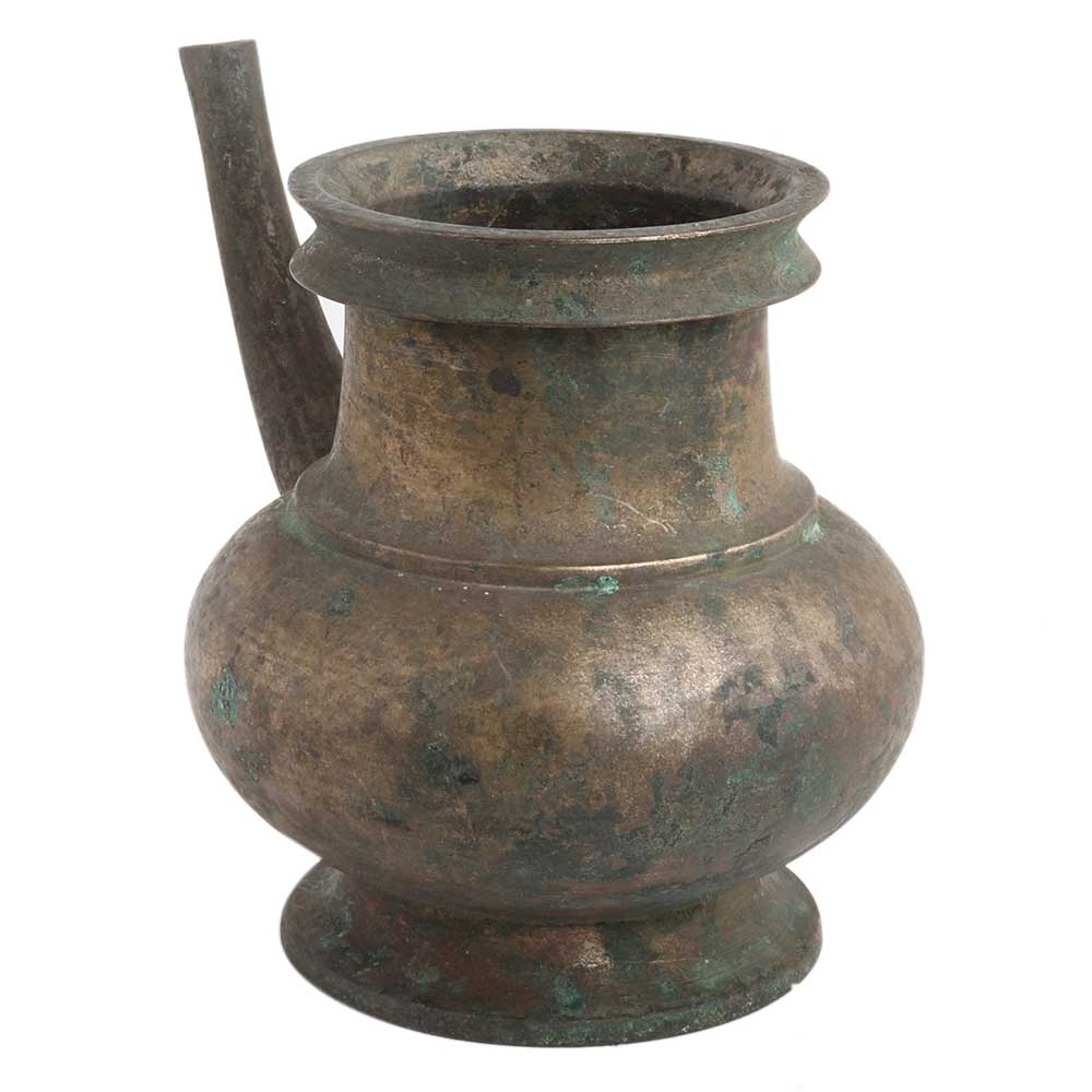 A hand-made brass kindi pot from south India is basically a holy water pot with a long spout used in temples and other religious places. In the urban establishment, it can be used for table decoration and as a planter pot.