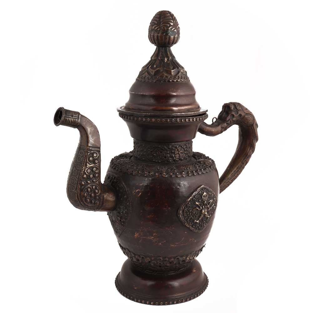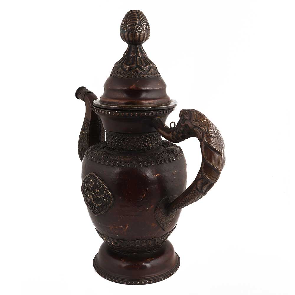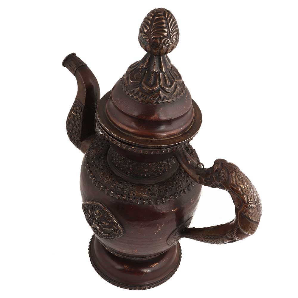 Handmade copper antique style teapot is made in antique Chinese style with lovely embossed design and dragon handles. You can use it as a collectible or a personal gift to special someone.