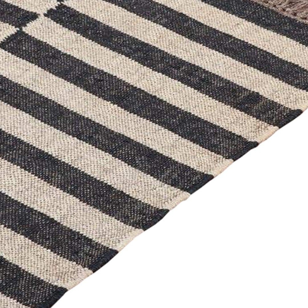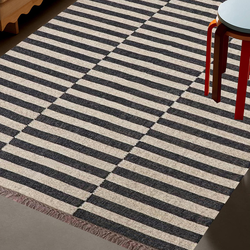 Handmade Black Synthetic Fibre Striped Carpet For Home