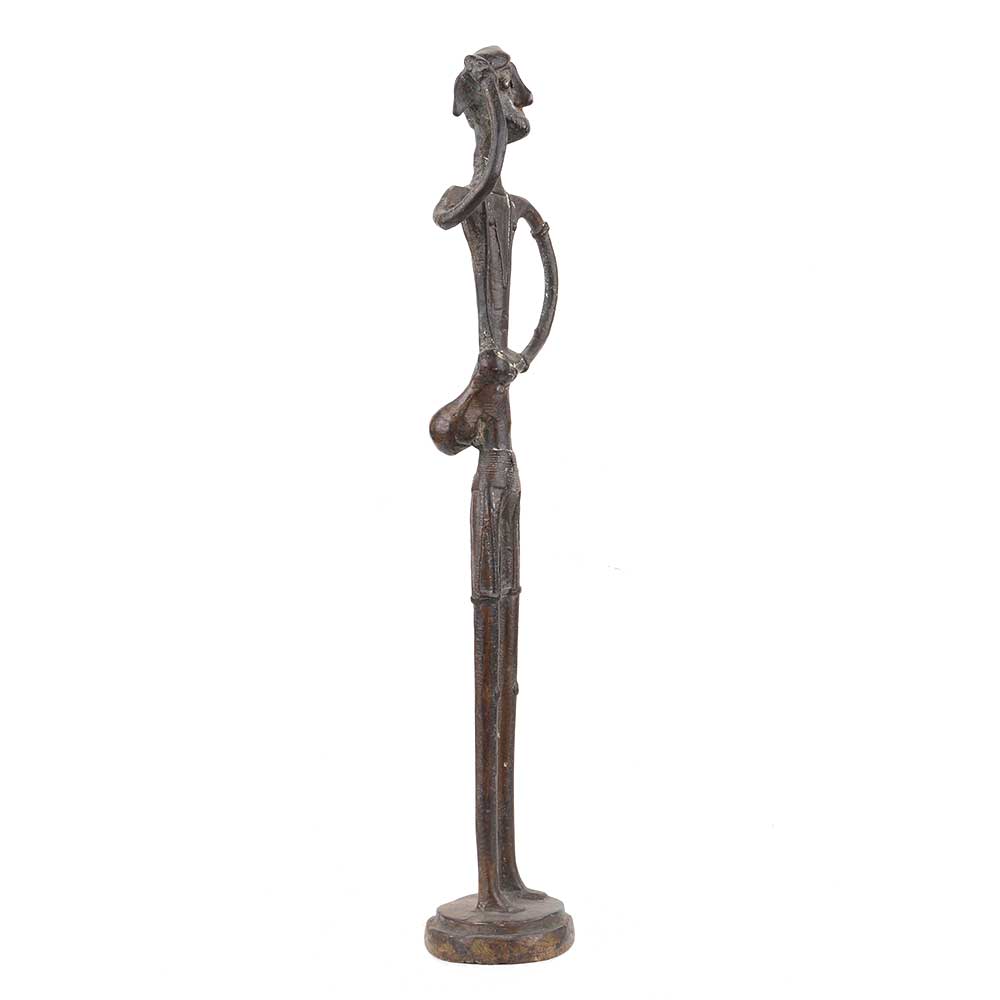 Simple black Tall Skinny Brass figurine African Native with Spear Tribal collectible and portable desktop decoration prop can be placed wherever you want. It can also stand firmly on a flat tabletop.