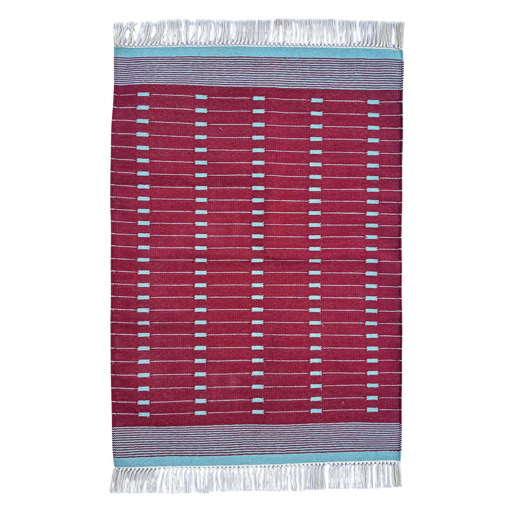 Discover the blue and red allure of this cotton dhurrie, handwoven with modern, boho inspiration. This piece gracefully complements modern and traditional settings, making it appealing to gifters, decorators and collectors. Each creation carries the warmth of skilled artisans, reflecting dedication and rich cultural heritage. Packed and quality checked by Indianshelf.
