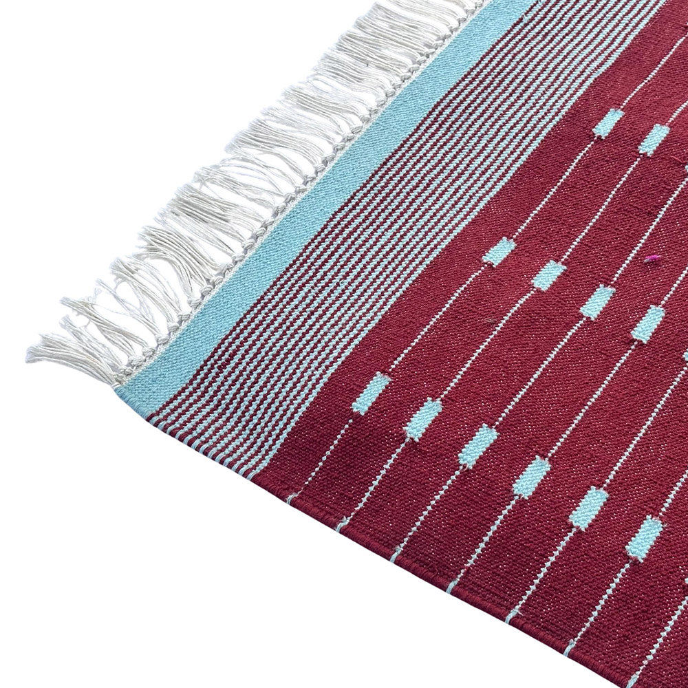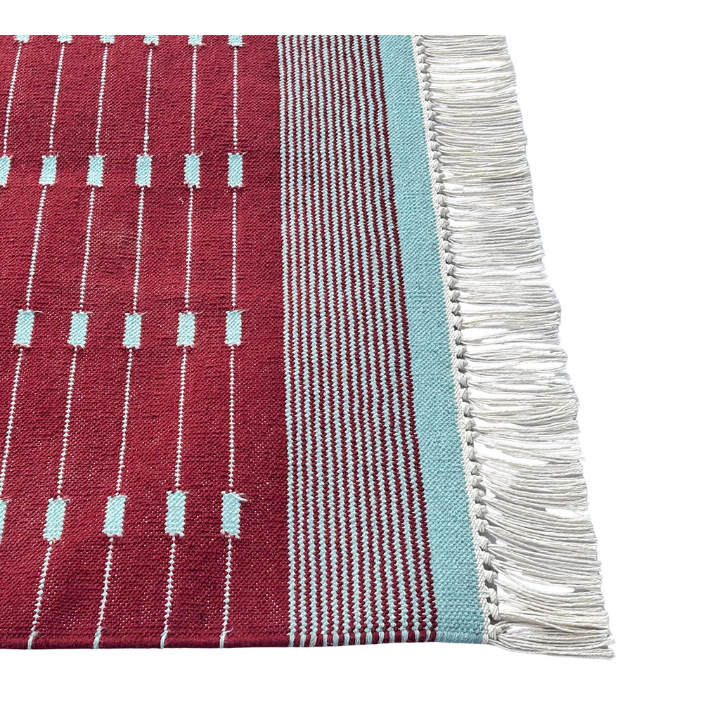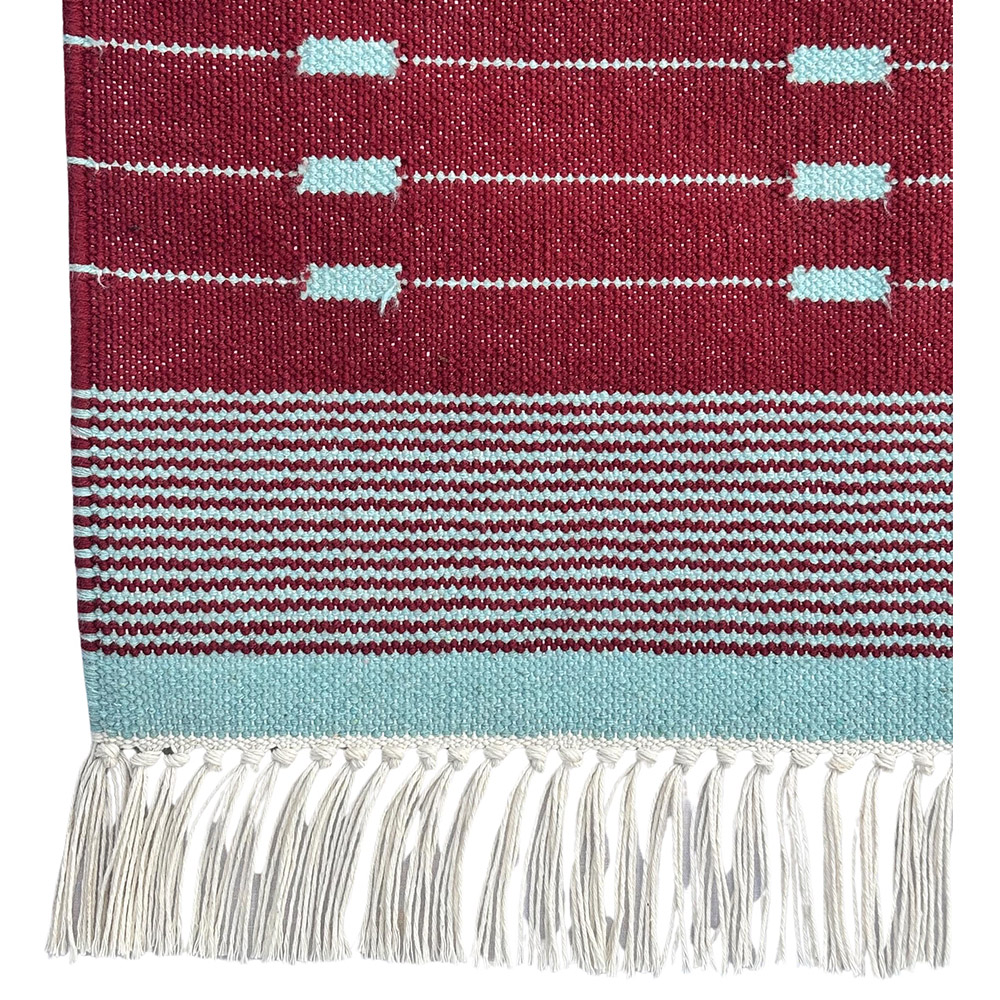 • Handmade Blue And Red Cotton Modern Dhurrie For Home