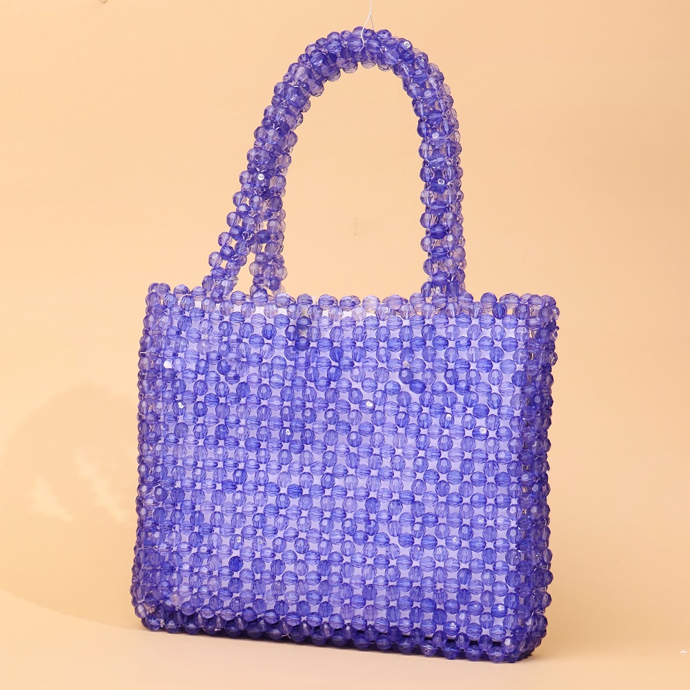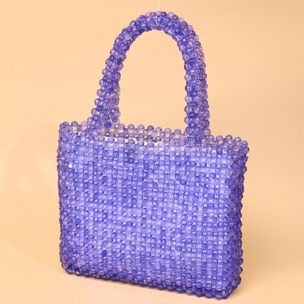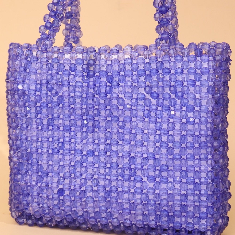 Brighten up your look with this handmade Blue beaded tote bag, crafted entirely from premium transparent beads for a bold and playful vibe. Its eye-catching design makes it a standout accessory, perfect for parties, brunches, or casual outings. The sturdy beaded handles ensure comfort, while the structured build gives it a chic and modern silhouette. A blend of vintage charm and contemporary style, this bag is not just an accessory but a statement piece that complements both casual and dressy outfits. Lightweight yet durable, it’s ideal for carrying your everyday essentials in style.