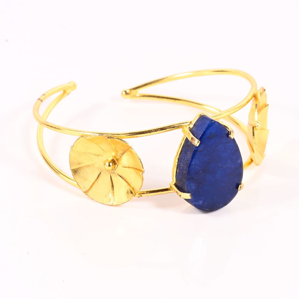 The Handmade Brass Designer Bracelet with Blue Agate Gemstone for Women is a graceful blend of natural beauty and thoughtful craftsmanship. Crafted in brass and highlighted with a soothing blue agate gemstone, this bracelet reflects calm sophistication through colour and form. The compact 3-inch size sits comfortably on the wrist, making it ideal for everyday elegance or subtle statement styling. Hand-finished by artisans, it carries a sense of individuality and quiet luxury.