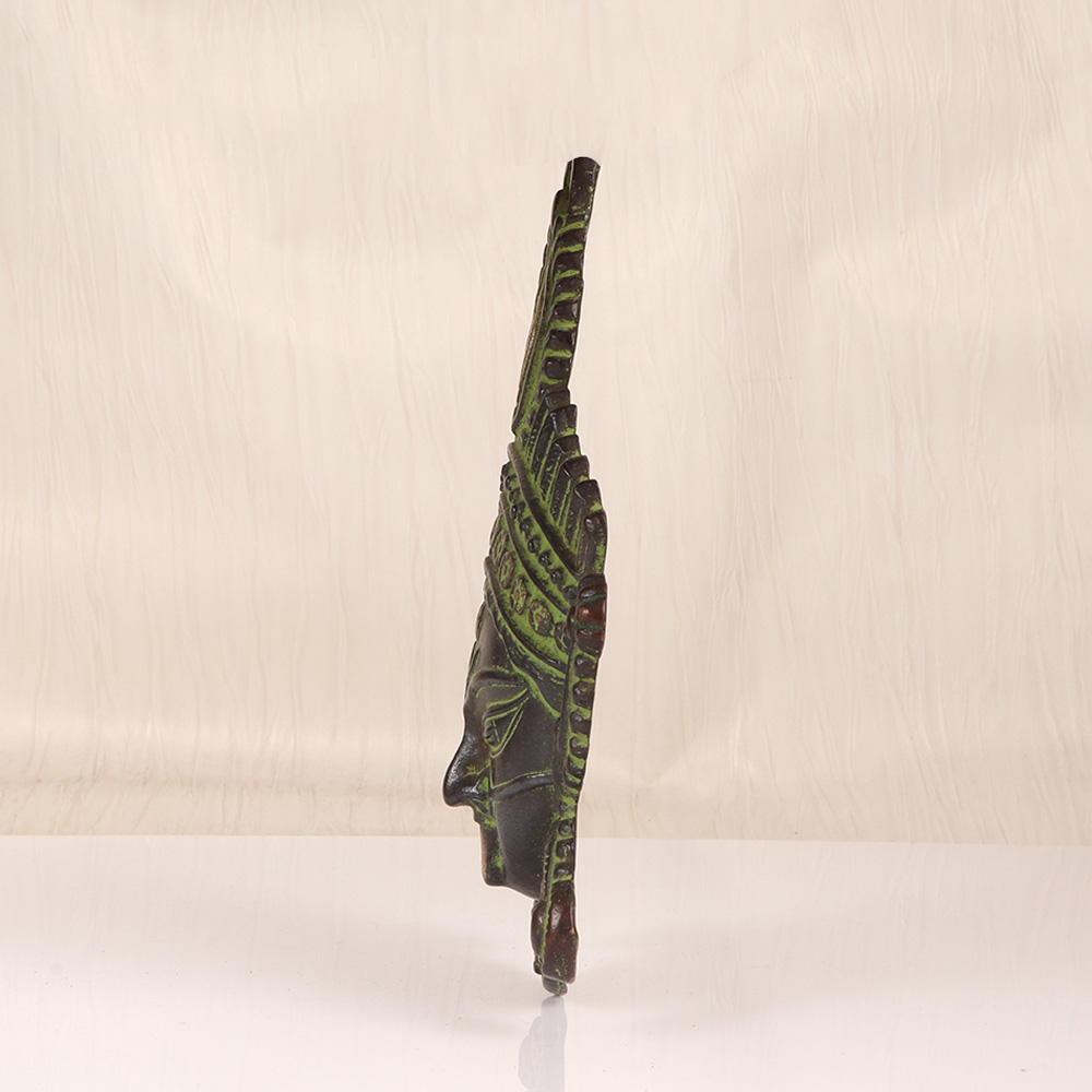 The Goddess Kali is a force to be reckoned with - a fierce and revered figure in Hindu mythology who represents the transformative power of the divine feminine. This breathtaking brass wall hanging brings her powerful presence into your home, inviting you to connect with her energy and embrace the process of personal and spiritual evolution. Crafted with meticulous attention to detail, this solid brass piece is a true work of art. The rich, dark finish gives it a sense of weight and gravitas, while the intricate design captures the Goddess Kali in all her glory. Her fierce expression, her flowing hair, and her ornate adornments all come together to create a mesmerizing and awe-inspiring visual. Kali is a complex and multifaceted figure, representing both destruction and rebirth, death and renewal. By inviting her presence into your life through this stunning wall hanging, you open yourself up to the process of transformation. She encourages you to face your fears, to let go of the past, and to surrender to the cycles of life - all in service of your own personal growth and spiritual evolution. Whether you're a devotee of the Goddess or simply seeking to infuse your home with profound spiritual energy, this brass Kali wall hanging is a stunning and impactful addition. Let it inspire you to tap into your own inner power, to embrace your authentic self, and to walk the path of the divine feminine. Kali is here to guide you, to challenge you, and to help you shed what no longer serves you, so that you may be reborn, renewed, and empowered.