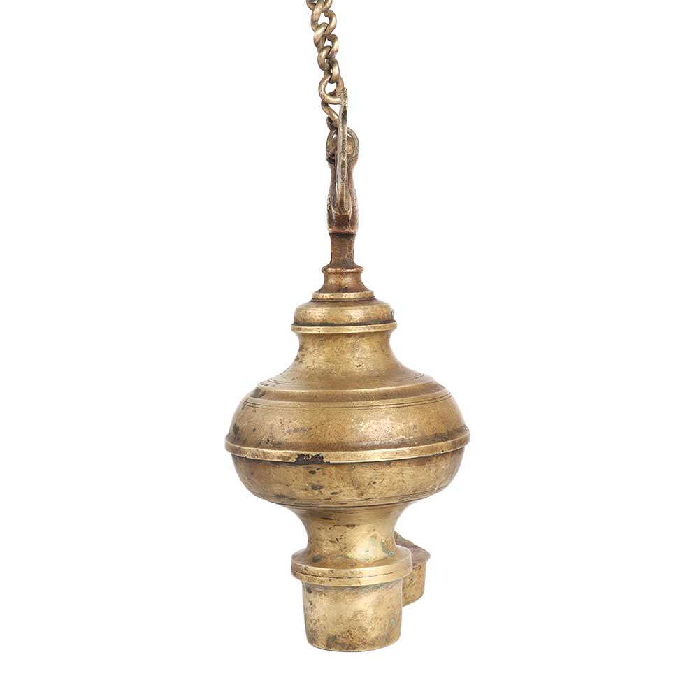 A unique oil lamp crafted from the finest brass to leave a long-lasting impression on the decor. This oil lamp has a pot shape design with a peacock carved on it and a chain to hang in the temple or prayer room. This vintage oil lamp can be used with mustard oil or desi ghee and a cotton wick. Use it on special occasions or for worshiping God to spread positive flair in the environment. The first choice of vintage collectors to display this unique oil lamp in their collection or at exhibitions. It has an elegant brown finish that makes it a perfect gift for your loved ones on any special or festive occasion.