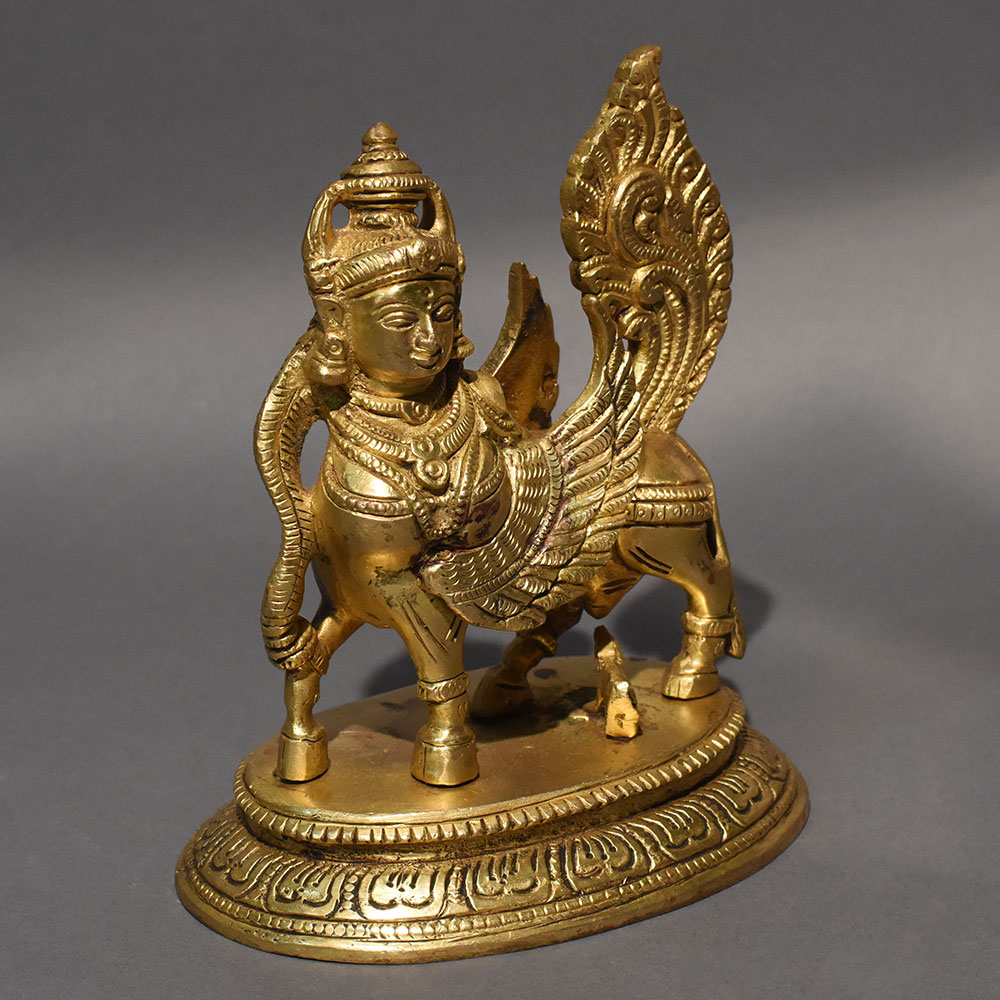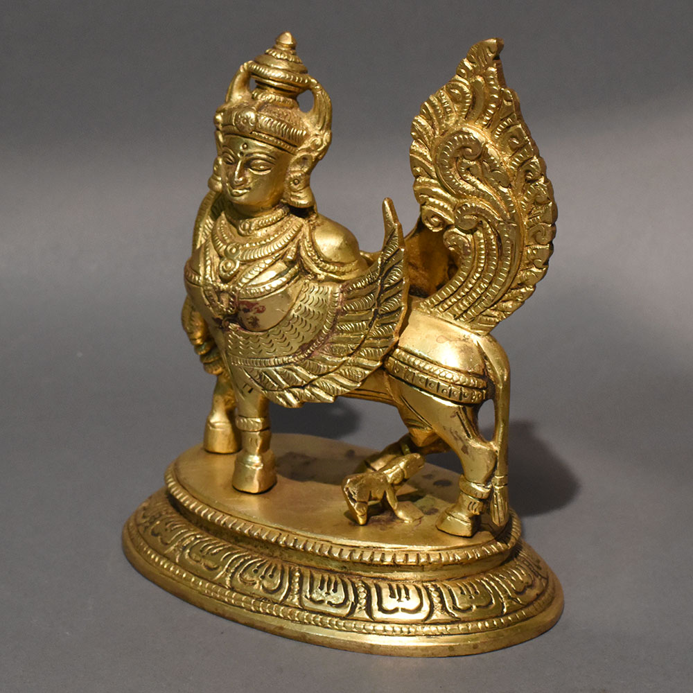Bring divine grace and spiritual prosperity into your home with this exquisitely handcrafted Brass Kamadhenu Statue. Kamadhenu, the sacred wish-fulfilling cow in Hindu tradition, represents abundance, nourishment, motherhood, and protection. This beautifully sculpted piece captures the divine form with a calf beneath her, symbolizing care, continuity, and blessings. Crafted from solid brass, the statue showcases intricate detailing in the crown, jewelry, wings, and ornamental base, reflecting traditional temple artistry. The antique gold finish enhances its timeless appeal, making it a striking centerpiece for pooja rooms, home temples, altars, or sacred dcor spaces. Kamadhenu is believed to attract prosperity, harmony, and positive energy when placed in homes or workplaces. Whether used for daily worship, festive decoration, or as a collectible art piece, this brass idol adds spiritual significance and cultural richness to any setting. An ideal gift for housewarmings, weddings, religious ceremonies, and festive occasions.