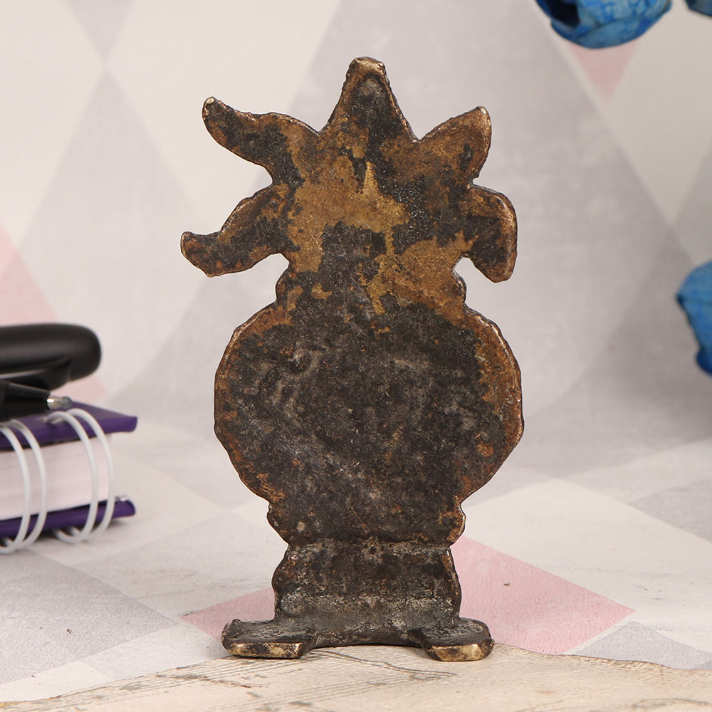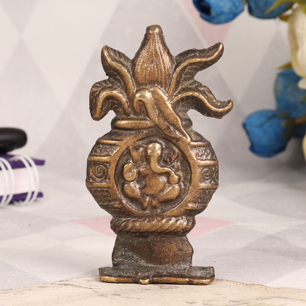 Elevate your spiritual space and showcase your reverence for Lord Ganesha with this exquisite Brass Lord Ganesha Kalash plate. Handcrafted by talented Indian artisans, this stunning piece boasts an antique brown finish, lending it an aura of timeless elegance. Crafted from high-quality brass, this Kalash plate is a symbol of artistic excellence and devotion. Its intricate design captures the essence of Lord Ganesha's divine grace, making it a perfect addition to your home, office, restaurant, hotel, or cafe. Place it in your prayer room to enhance the ambiance of worship, radiating positive energy. This piece transcends its spiritual significance, making it a valuable addition to any vintage collection. Its antique brown finish adds an air of authenticity, making it suitable for display in museums and exhibitions, where it can narrate a story of India's rich cultural heritage. Furthermore, this Brass Lord Ganesha Kalash plate serves as a thoughtful and meaningful gift for your family, friends or relatives on special, festive, or auspicious occasions.