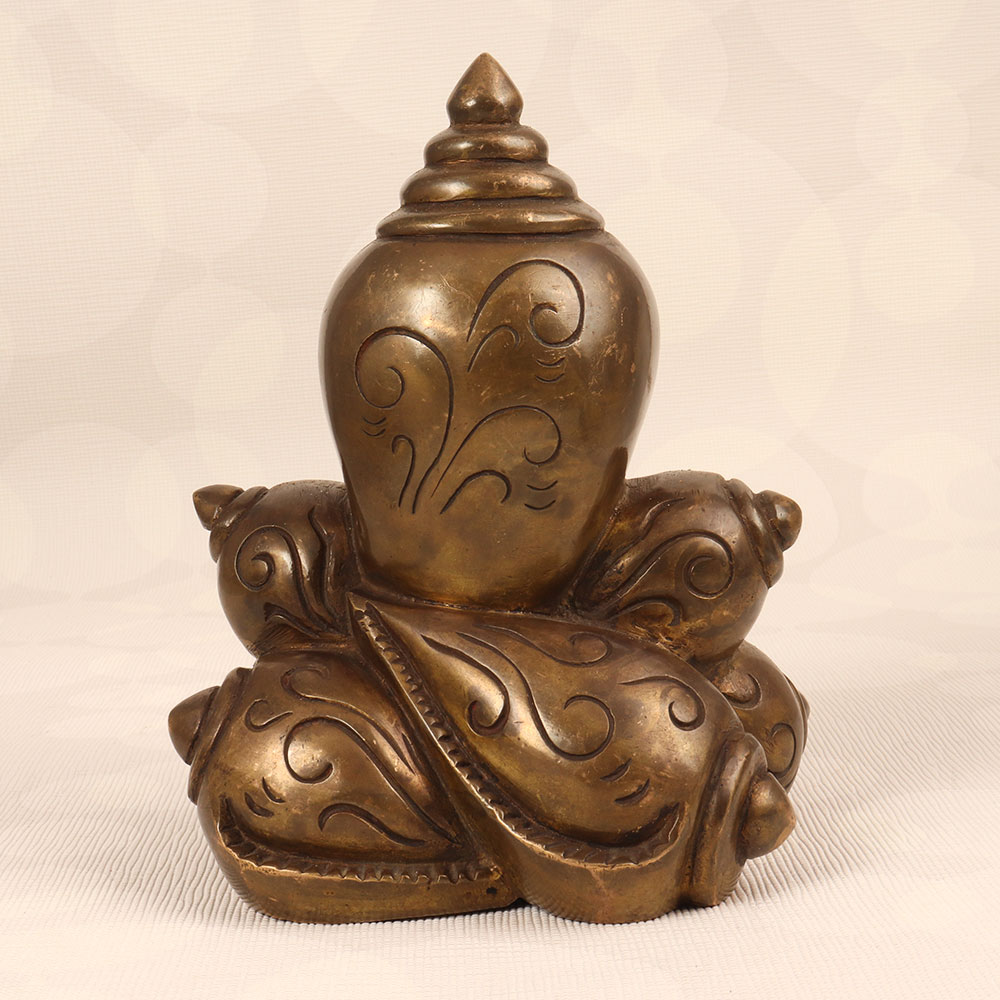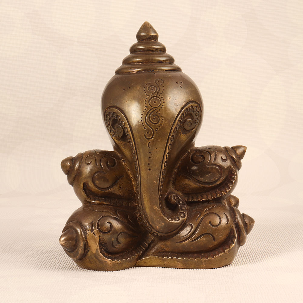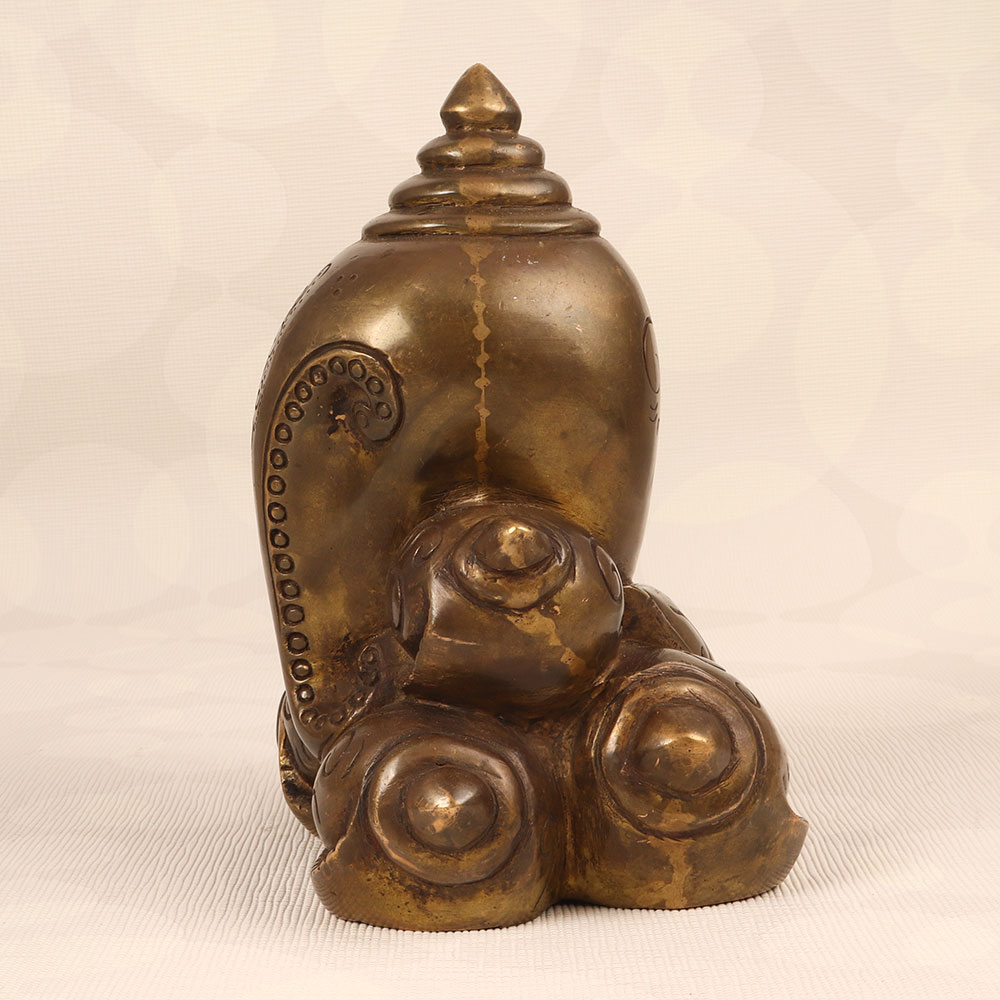 Adorn your prayer room with the timeless charm of our Vintage Brass Lord Ganesha Statue that is a true masterpiece crafted by talented Indian artisans in the Himalayan Art tradition. Made from high-quality brass, this statue boasts an antique brown finish, adding a touch of rustic elegance to any environment. Lord Ganesha, revered as the remover of obstacles and the god of wisdom, prosperity, and good fortune, graces this exquisite piece with his divine presence. Handcrafted with meticulous attention to detail, this vintage statue is a testament to the rich craftsmanship and cultural heritage of India. Whether adorning your home, office, restaurant, hotel, or cafe prayer room, it radiates a sense of spirituality and cultural significance. Embrace the spiritual essence by incorporating it into your vintage collection or present it as a thoughtful gift to your family, friends or relatives on special, festive, or auspicious occasions.