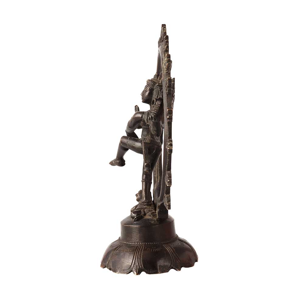 Buy a handmade brass statue of Lord Nataraja on our website and have it delivered directly to your home. Nataraja, also known as Advallan, is one of the cosmic dances of the Hindu god Shiva. A statue with elegant black finish made of high quality brass by skilled Indian craftsmen from South India. Lord Shiva is one of the most important deities in Hinduism. This statue depicts Lord Shiva in his cosmic dancing form, Lord Nataraja, standing on the demon Muyalaka on his left foot. Lord Nataraja is worshipped in many states of India, especially in the southern states. An auspicious gift for any special, festive and auspicious occasion for your loved ones.