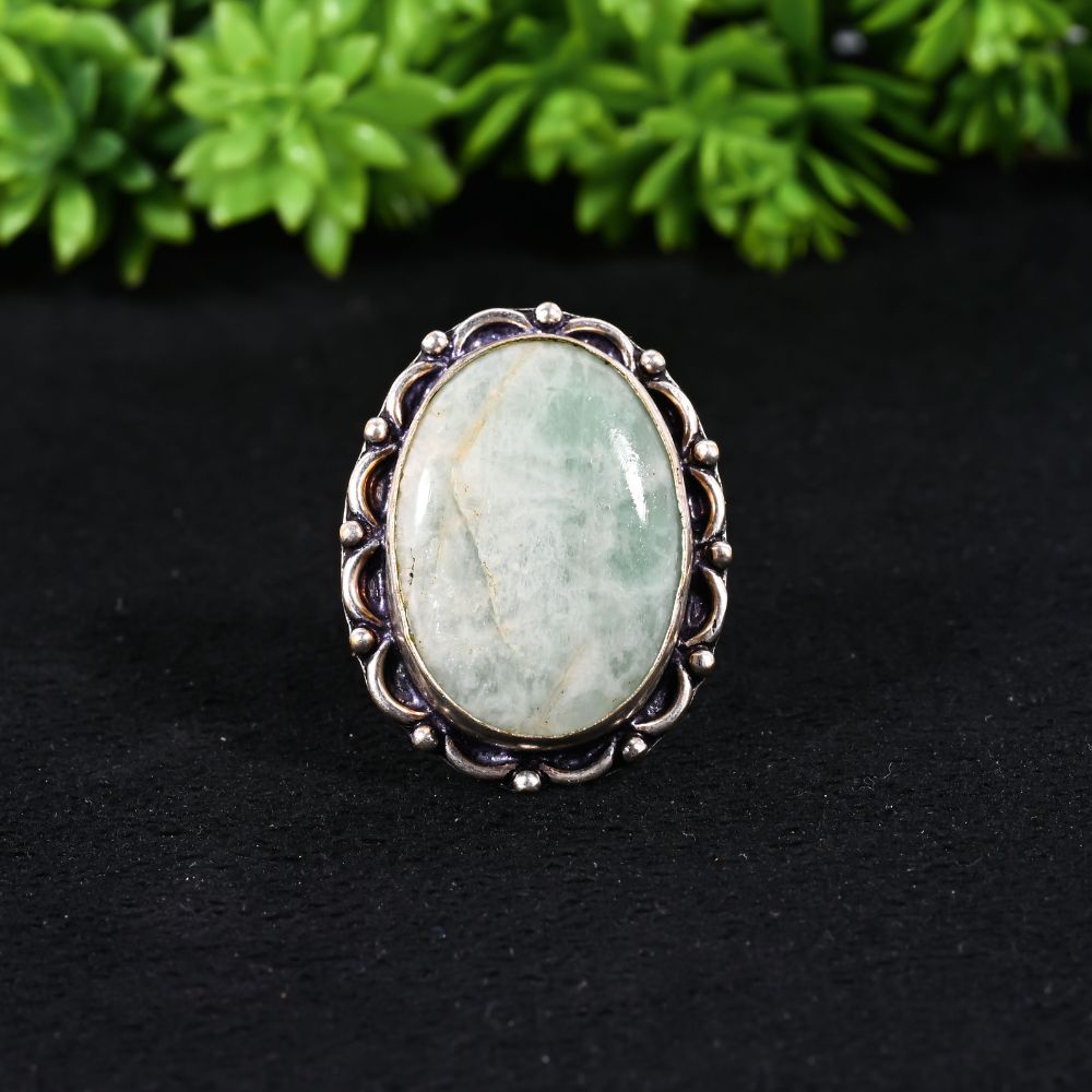 Pair this ring with neutral, pastel, or linen outfits, and store it in a dry pouch to preserve the oxidized finish and gemstone surface.