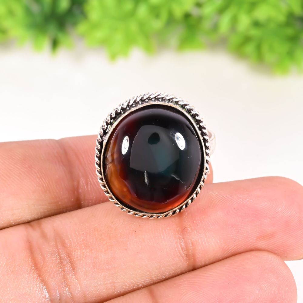 The Handmade Brass Ring with Onyx Gemstone for Women is a refined expression of strength and understated elegance. Crafted in brass and set with a polished onyx gemstone, this ring highlights the stone’s deep black tone and smooth, mirror-like finish. Compact yet visually bold, it offers a confident statement suitable for everyday wear. Designed as a thoughtful gift for her, this ring blends minimal design with symbolic depth.
