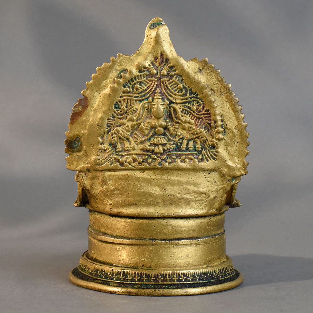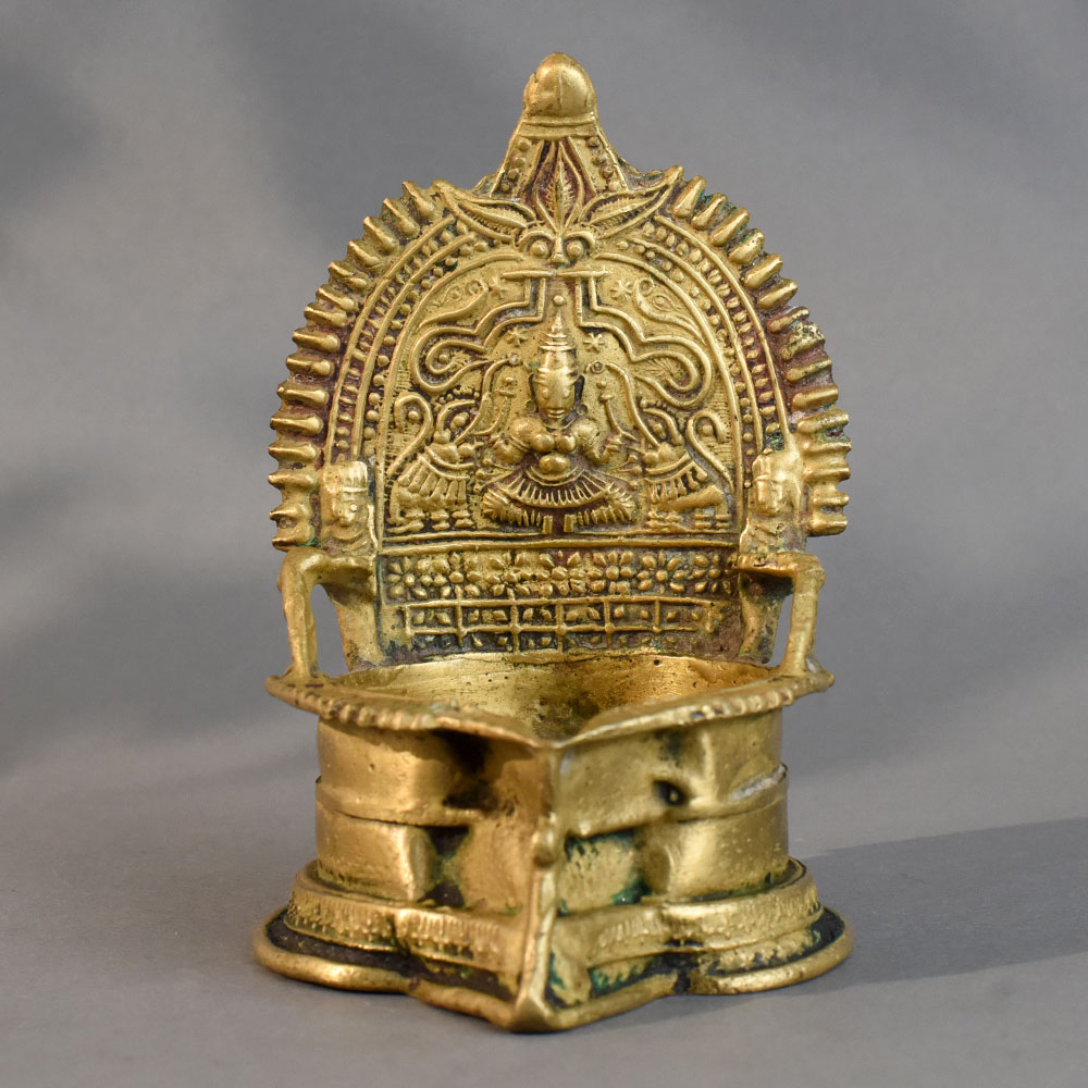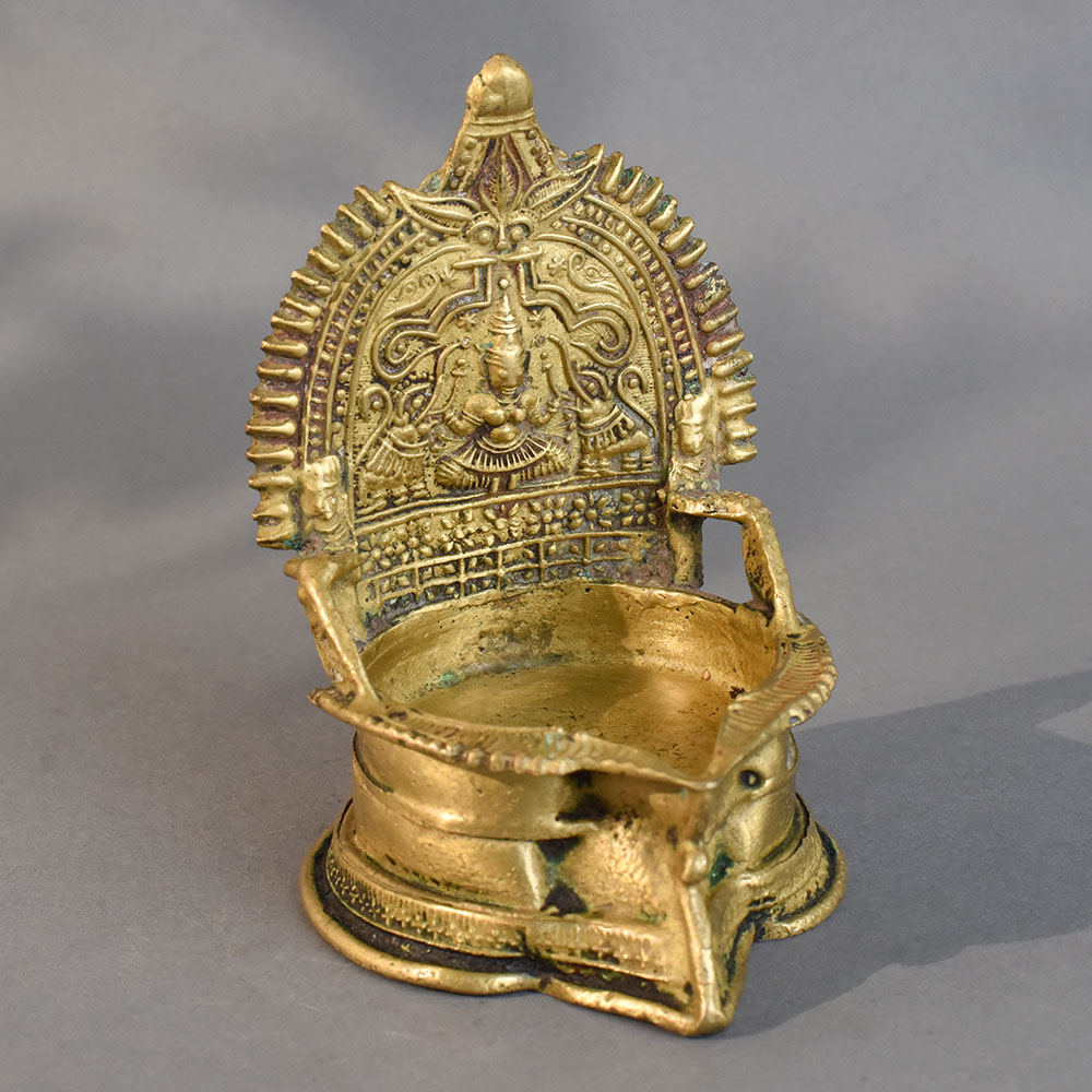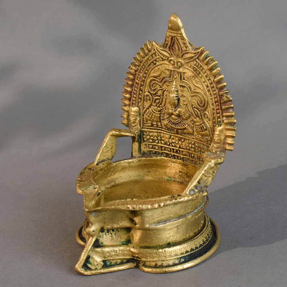 This beautifully handcrafted brass pooja diya is a fine example of South Indian art and tradition. The diya features intricate carvings with a traditional temple-style arch and detailed motifs, symbolizing divinity and auspiciousness. Perfect for daily worship, festive rituals, or as a spiritual Decor item, this diya adds a sacred glow to your pooja room. The durable brass material ensures long-lasting use while the artistic craftsmanship reflects the rich cultural heritage of India. Ideal for gifting during festivals, weddings, and housewarming ceremonies, this diya is both functional and decorative, bringing positivity and light into your home.
