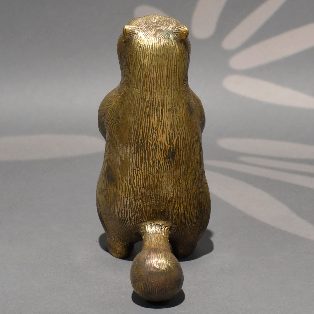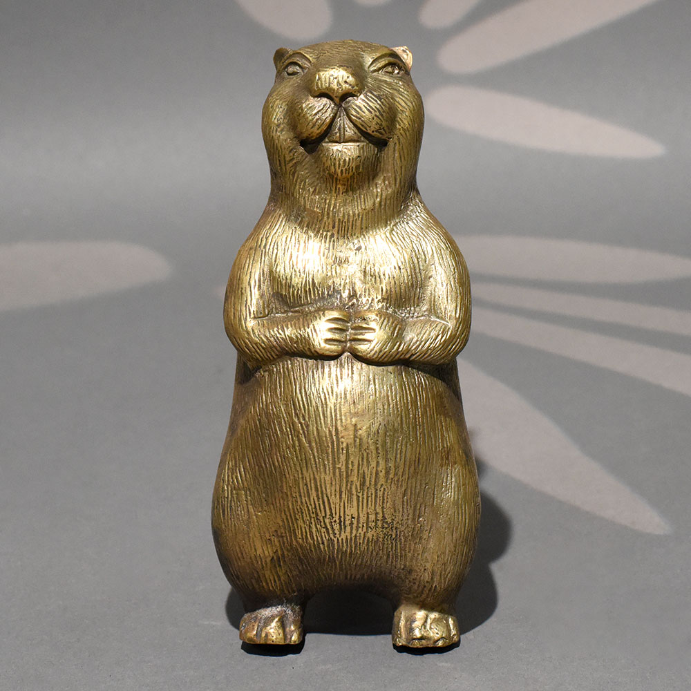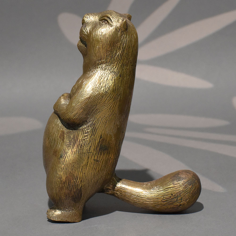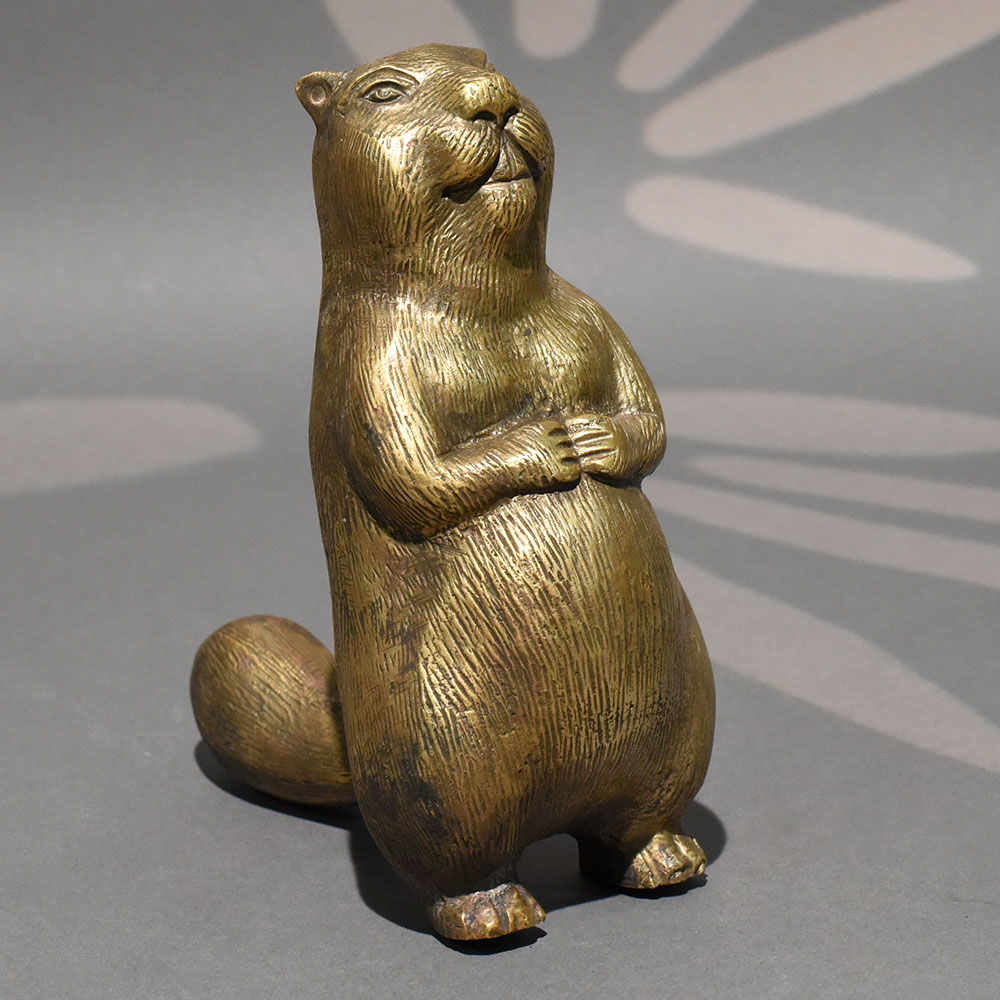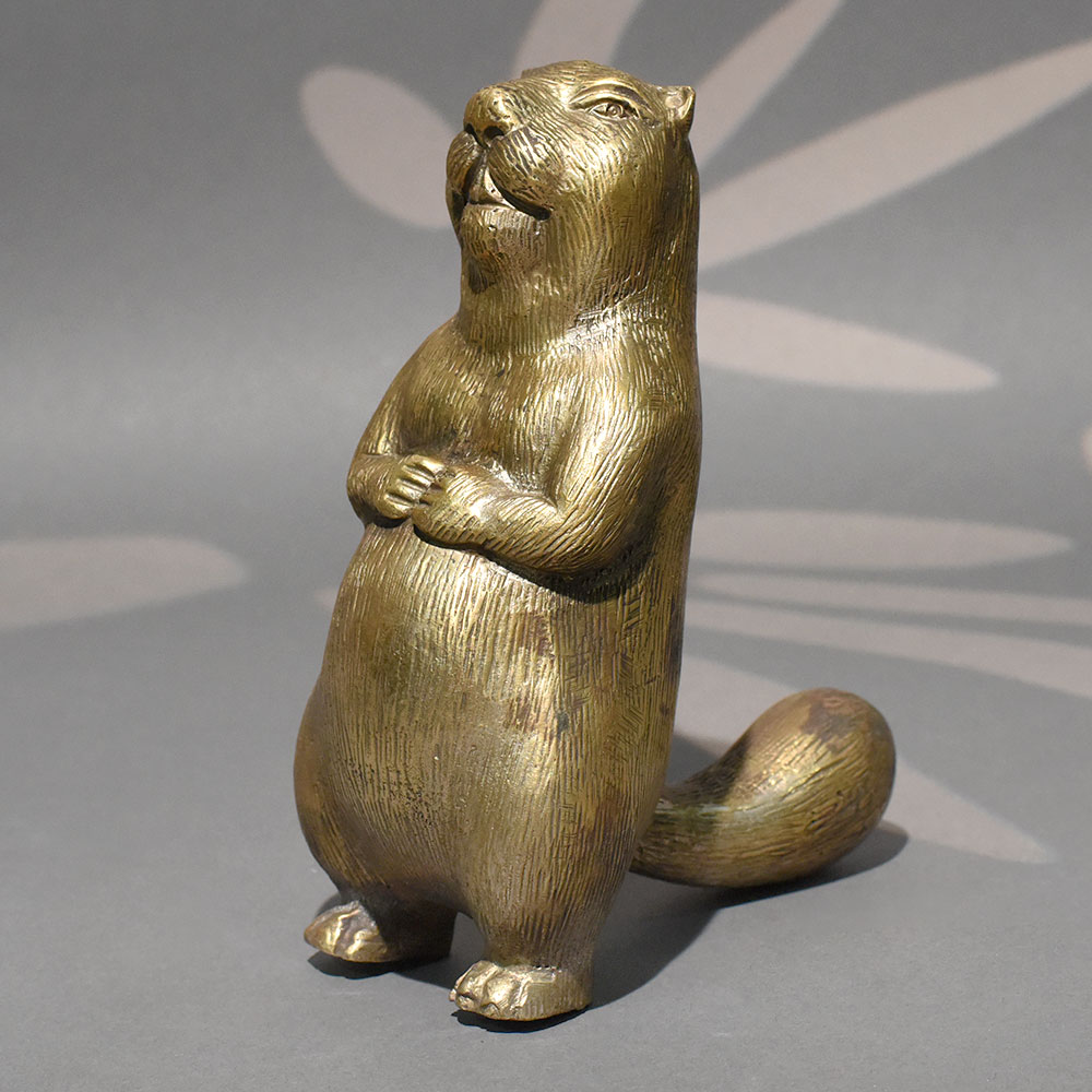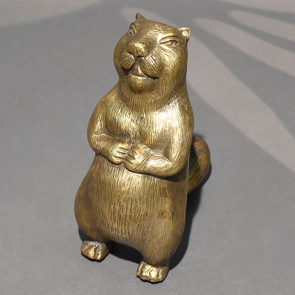 - Handmade solid brass standing beaver sculpture