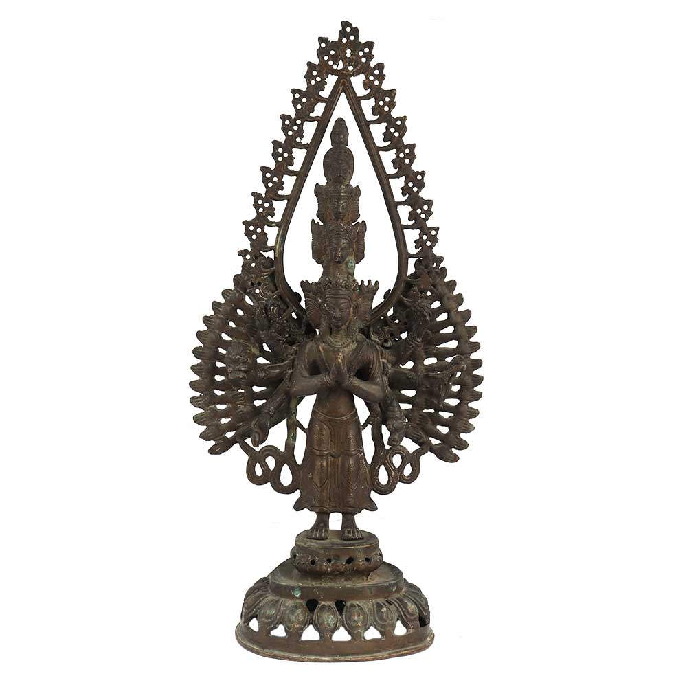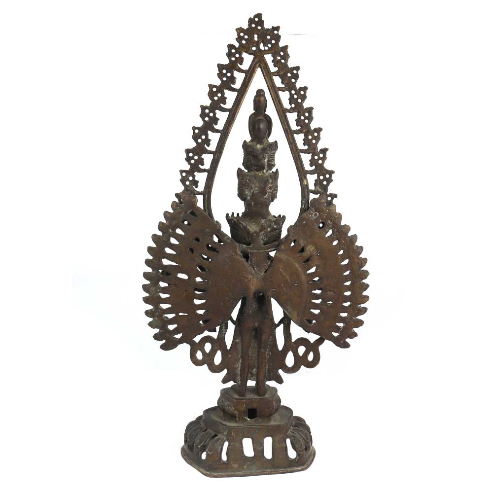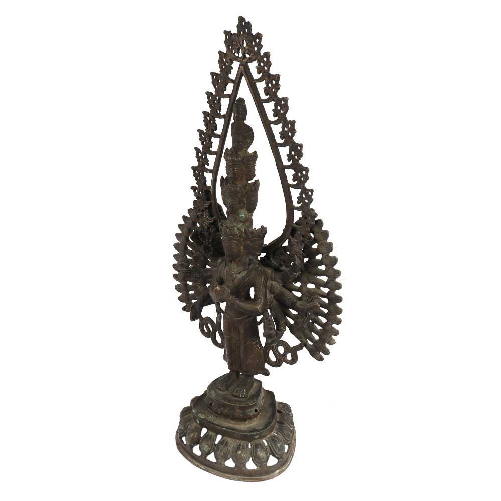 This is a handmade brass statue made by the local artisans of Nepal and this Avalokiteshwara statue is actually the lord of compassion and he sits on a lotus throne upon a lunar disc .Great for those in scholastic, literary, artistic or media fields, display this scared statue prominently in a main room of the home or workplace.