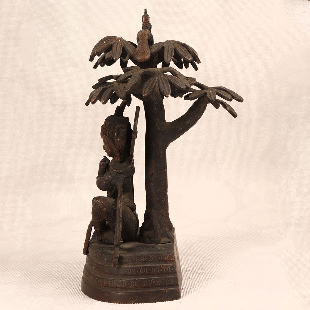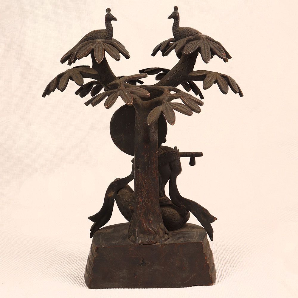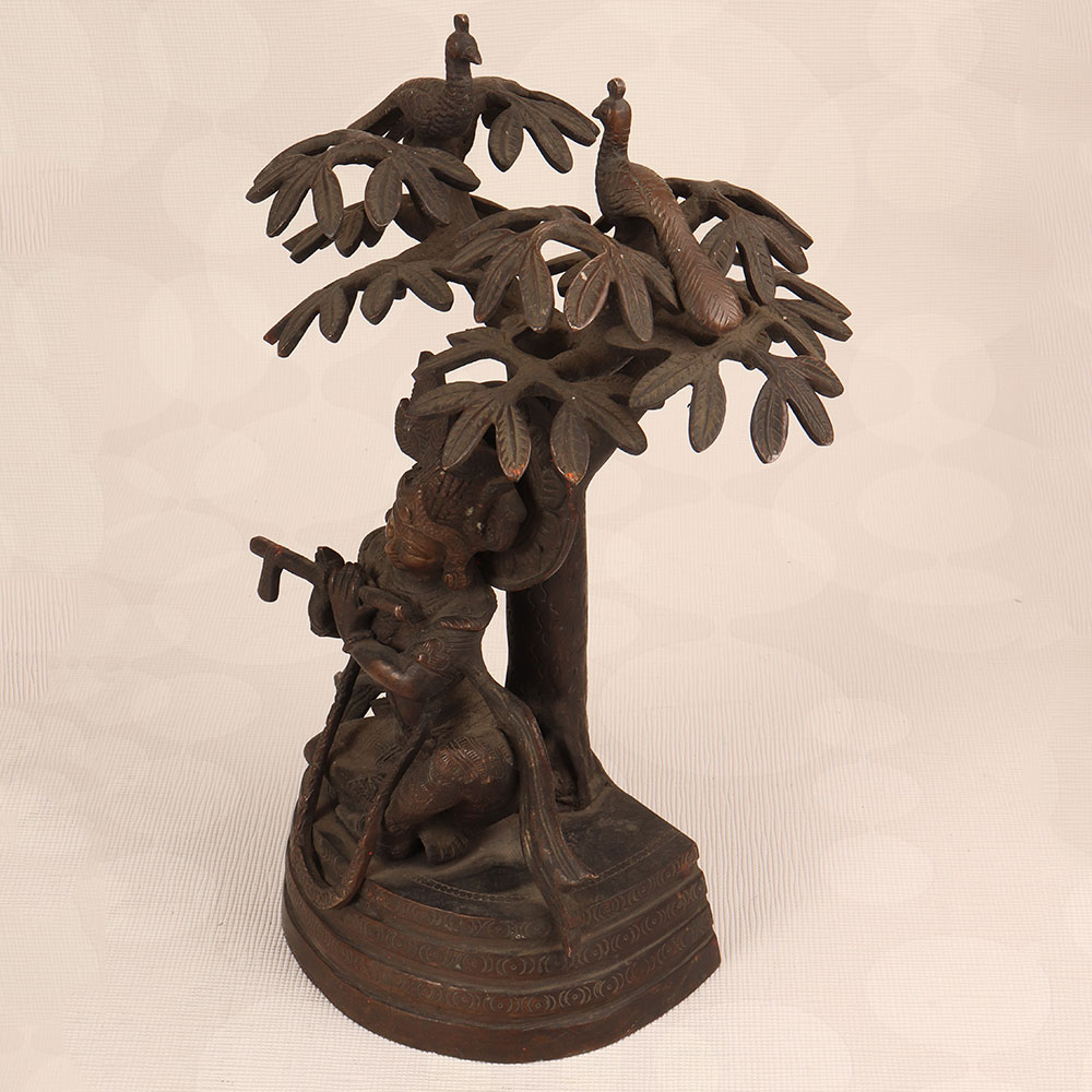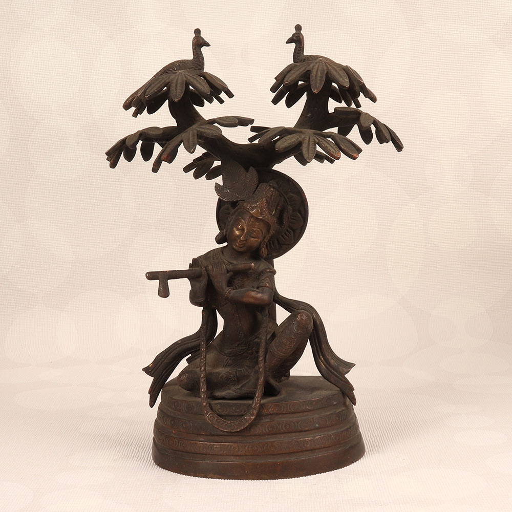 Enhance your space with the timeless charm of our Vintage Brass Statue of Lord Krishna that is a masterpiece crafted by professional Indian artisans. Intricately handcrafted from high-quality brass, this exquisite statue features Lord Krishna in a contemplative pose, seated under a tree, playing the flute. The dark finish adds an antique allure, reminiscent of classical artistry. This divine creation transcends the boundaries of culture, making it a versatile addition to any setting. Perfect for home, office, restaurant, hotel, or café prayer rooms, it exudes an aura of tranquillity. The statue of Lord Krishna not only honours the divine but also becomes a captivating piece for vintage collectors. For a harmonious ensemble, consider complementing it with our Lord Ganesha statues. Together, they symbolize prosperity, wisdom, and divine protection. A meaningful and elegant gift, this statue is ideal for special, festive, or auspicious occasions, providing a touch of spirituality and aesthetic appeal to your family, friends or relative’s lives.