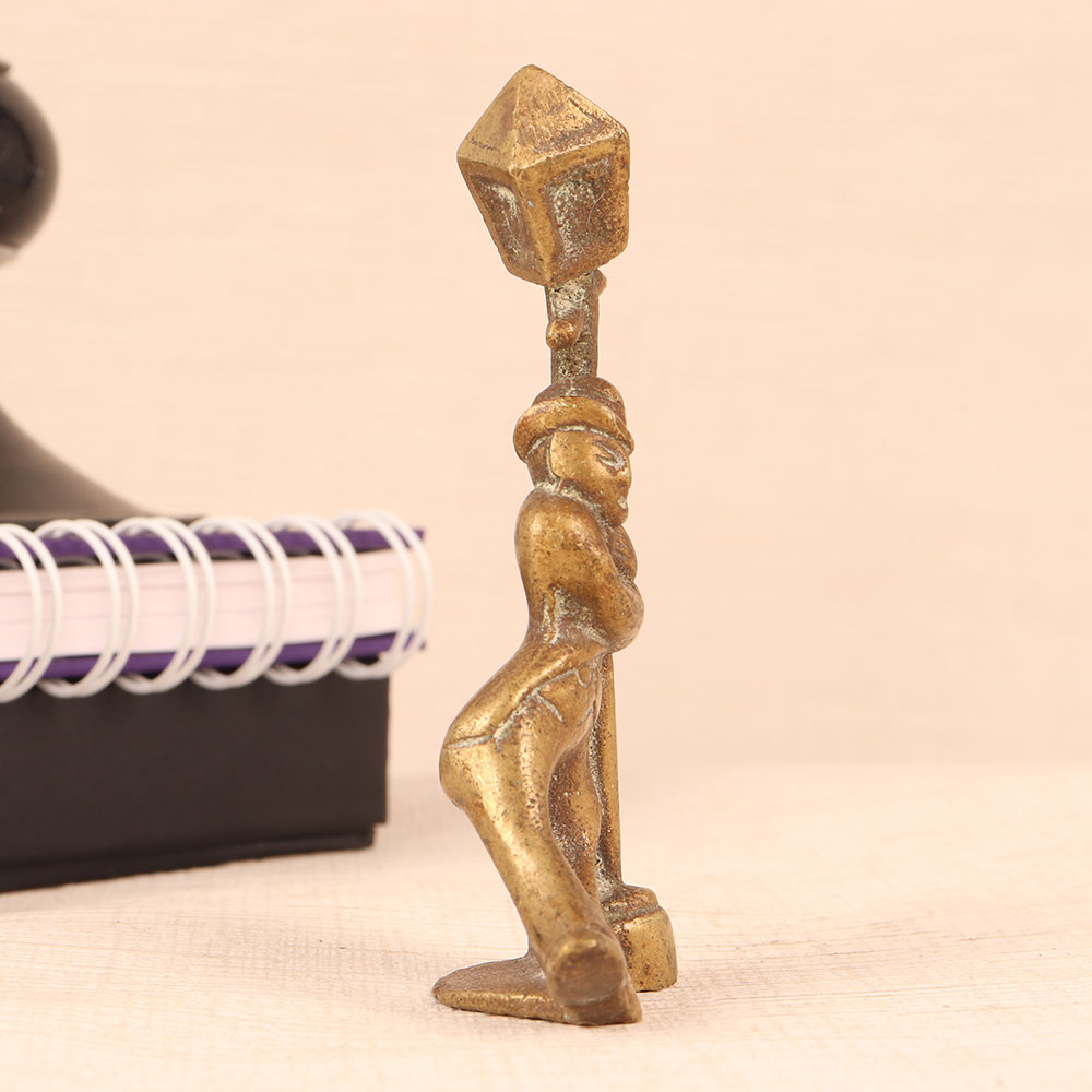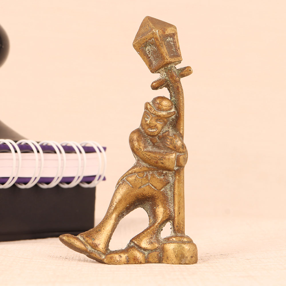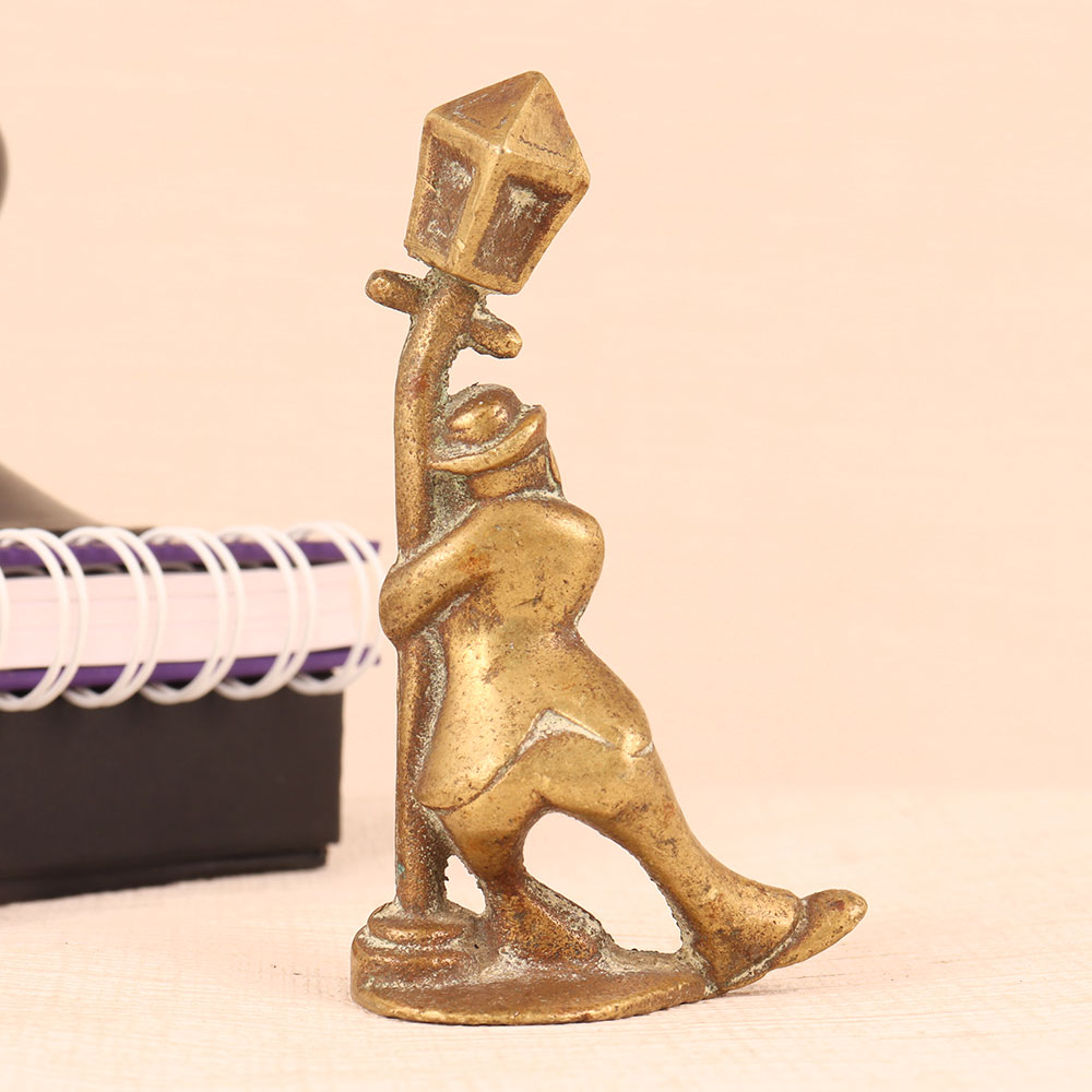An Exquisite Brass Statue of a standing man, gracefully holding a vintage-style light pole. Crafted to perfection by professional craftsmen in the English Art tradition, this masterpiece exudes timeless elegance. The statue boasts an antique brown finish, lending it an air of nostalgia and sophistication. Made from high-quality brass, it showcases the artistry and craftsmanship that only skilled hands can deliver. This versatile piece finds its place in various settings, be it your home, office, restaurant, hotel, cafe, or shop. Its ability to seamlessly blend with different aesthetics makes it a versatile choice for decorators and collectors alike. For collectors of vintage treasures, this statue is a must-addition to your curated collection. It's a statement piece that will spark conversations and admiration. Looking for a memorable gift? This Brass Statue is an ideal choice for your family, friends or relatives on special, festive, or auspicious occasions. It's a symbol of sophistication, artistry, and the timeless charm of English Art.