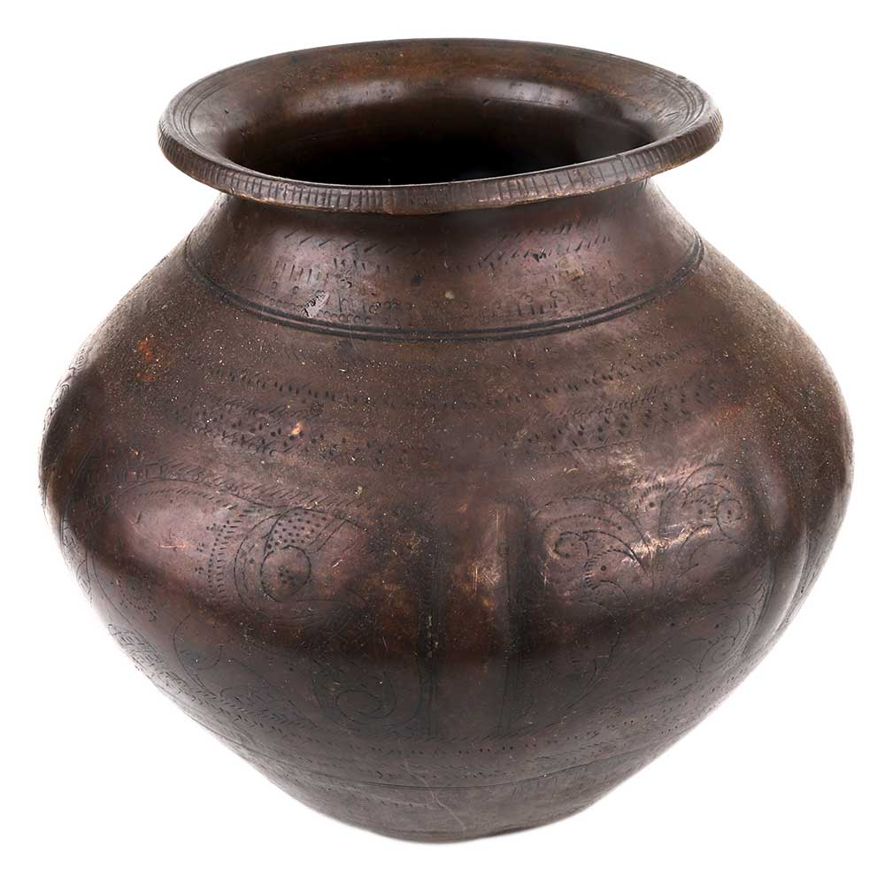 Handmade brass water pot with patina and delicate carvings to enhance the look of ordinary water pot. Use it yourself or use it for flower decoration ,as a planter, store holy water and kept in temples or other places of worship. Gift it to your near and dear ones on diwali, chrismas,new year, house warming etc.
