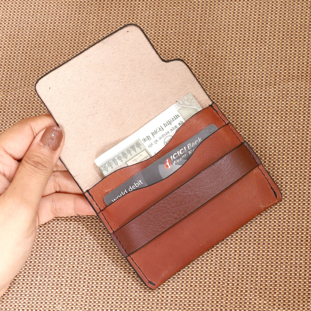 Crafted from lovely Brick and Cherry leather, it has a sleek flap opening, featuring a dedicated card slot and a versatile main compartment for cash, slips, or additional cards. Despite its petite size, Abby provides just the right amount of space for your daily essentials, making it an ideal companion for quick errands or nights out.