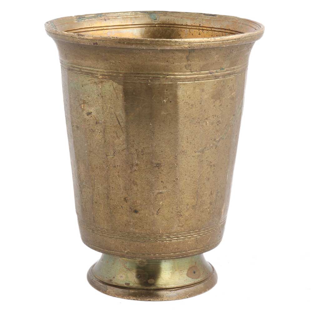 Made of old brass metal this handmade glass tumbler has an elegant antique design that can be used to enrich your home decor or decorate your restaurants and bars.