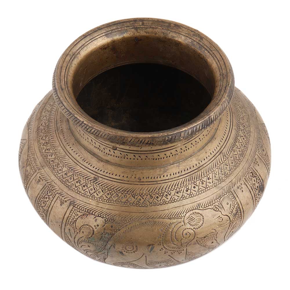 This rare brass pot is carved with hindu deity statues by master craftsmen. You can use it for collection, decoration and also as a spiritual awakening.