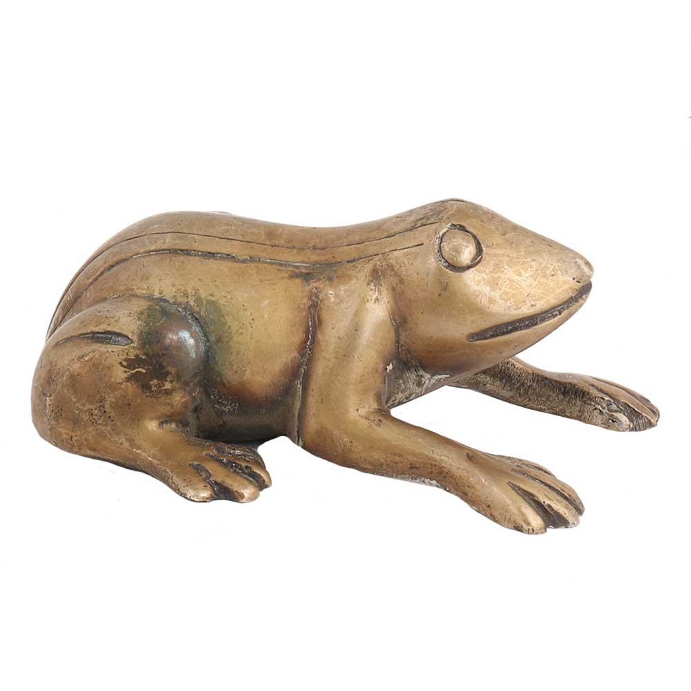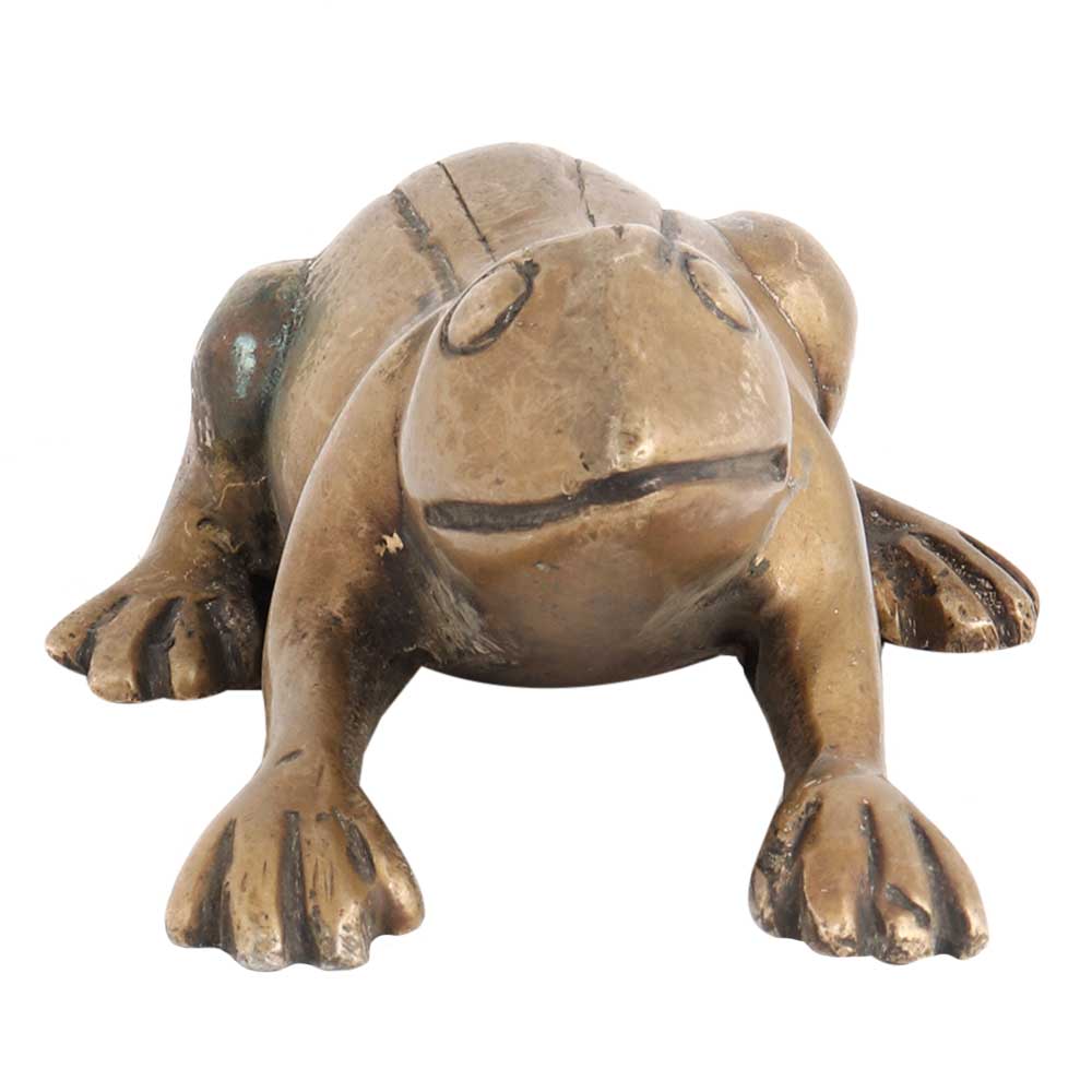 This handmade statue of a frog is made in pure brass with intricate carvings. Looks good on a bookshelf, mantle, T.V cabinet, table, or desk. Lovely gifting option.