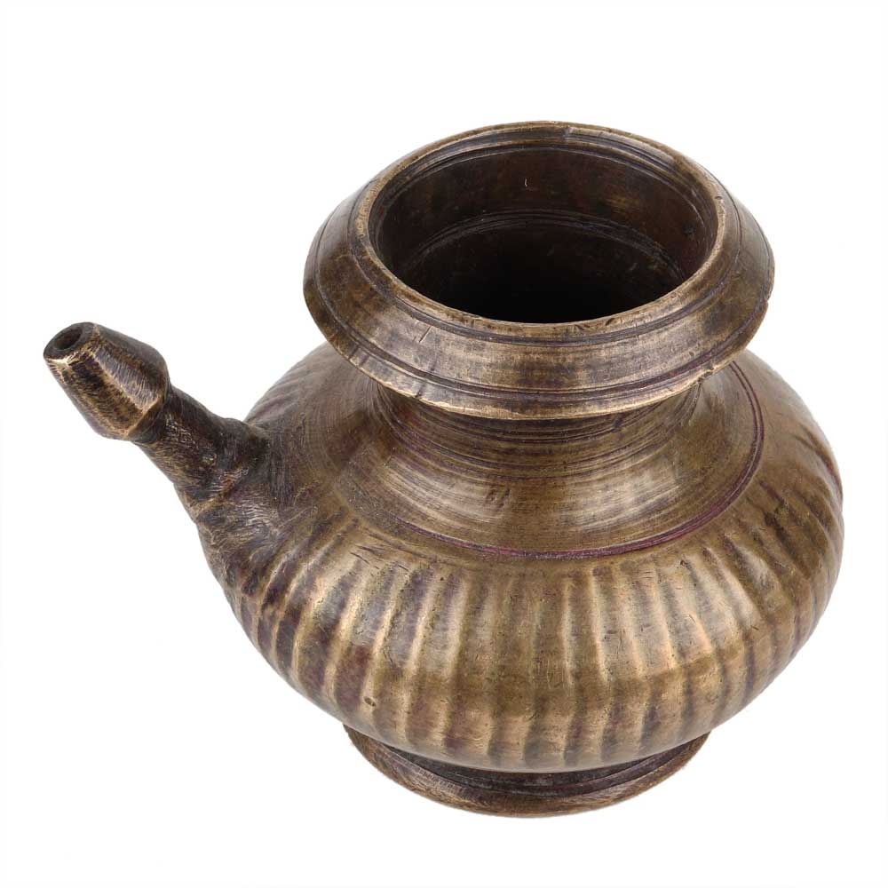 The holy Water pot is made of brass and has a spout to pour out the liquid stored in the container. It is an ideal Kitchen decoration, table decoration, hotel, restaurant and spa decoration, Diwali gifts, wedding gifts for loved ones.