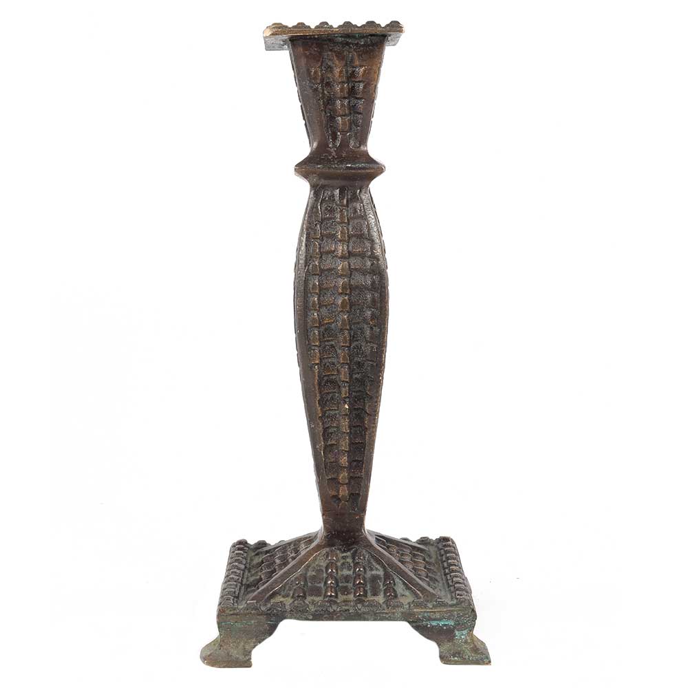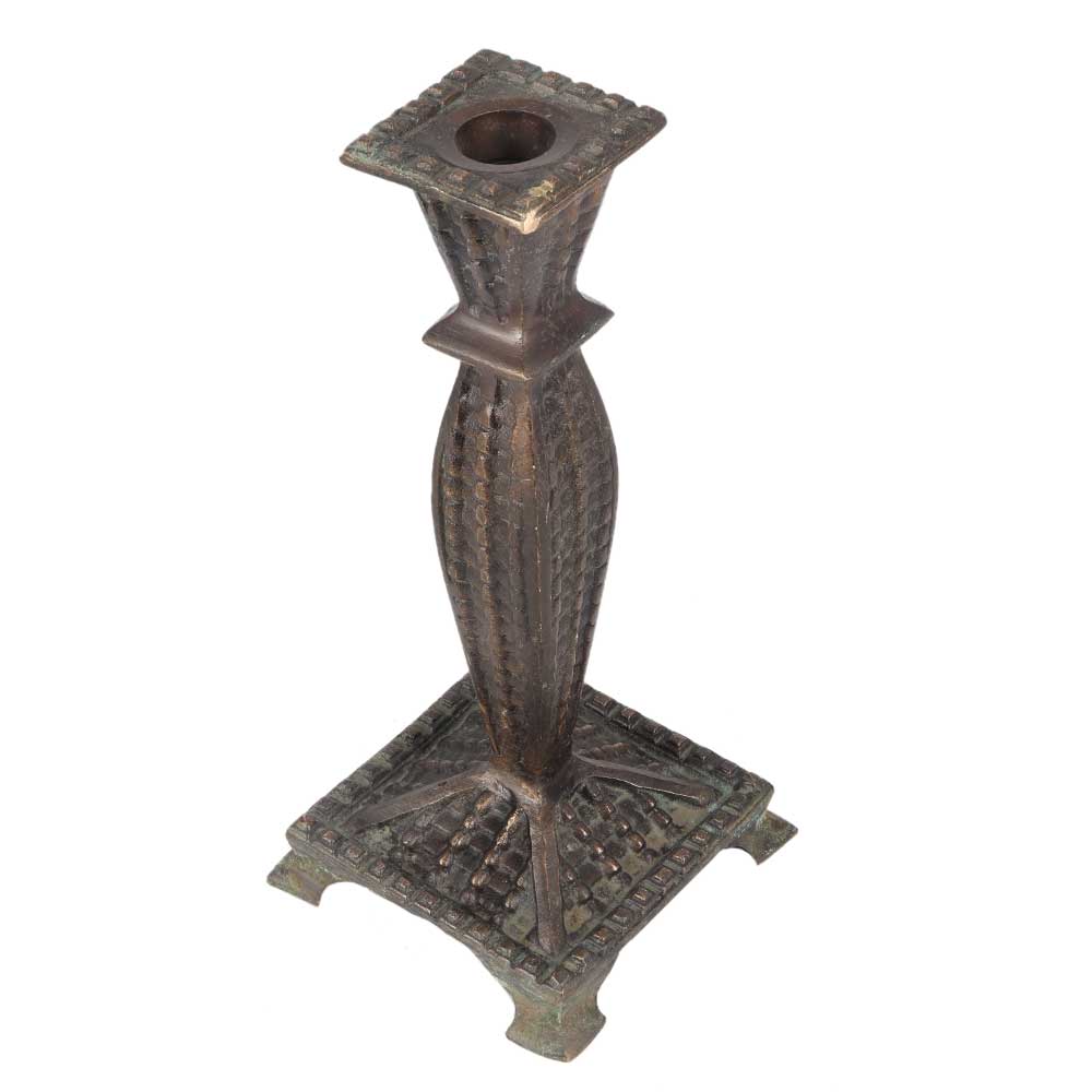 Single cast antique brass candlestick with tripod base and appealing carved classic continental design can be used as a lovely artifact or a nice candelabra present for weddings, parties and Christmas.
