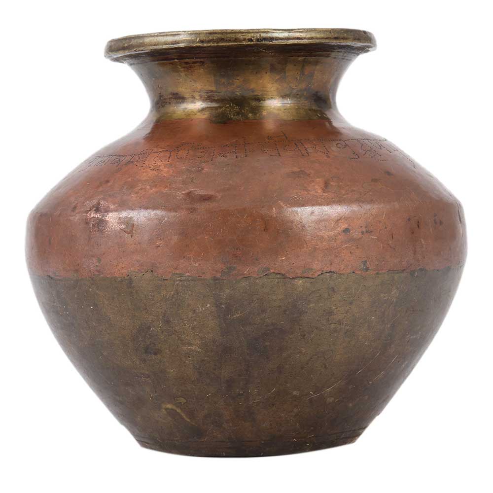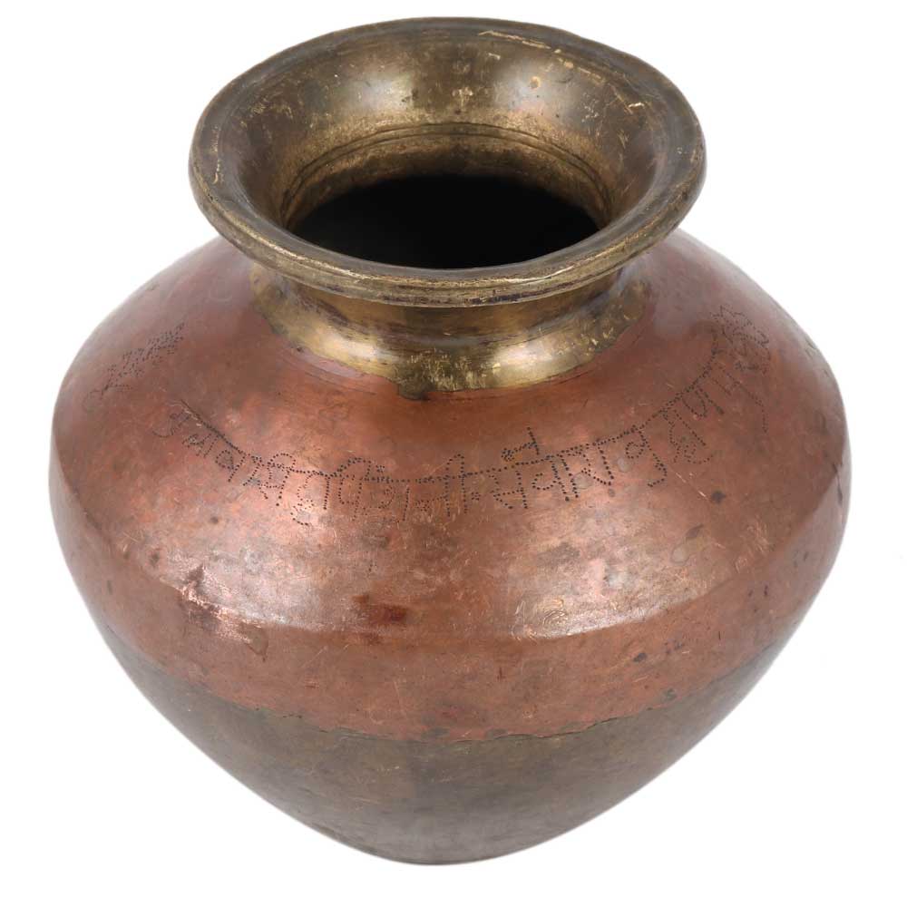 Indian artisans handcrafted a Ganga Jamuna holy water pot made out of brass and copper. This stunning piece is a collector's delight and would make an amazing decor, stage decoration, wedding gift, or Diwali gift, among other things.