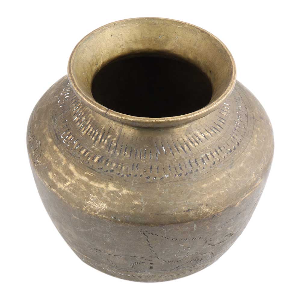 Handmade Brown Patina Big Water Pot Or Matka With Delicate Carving