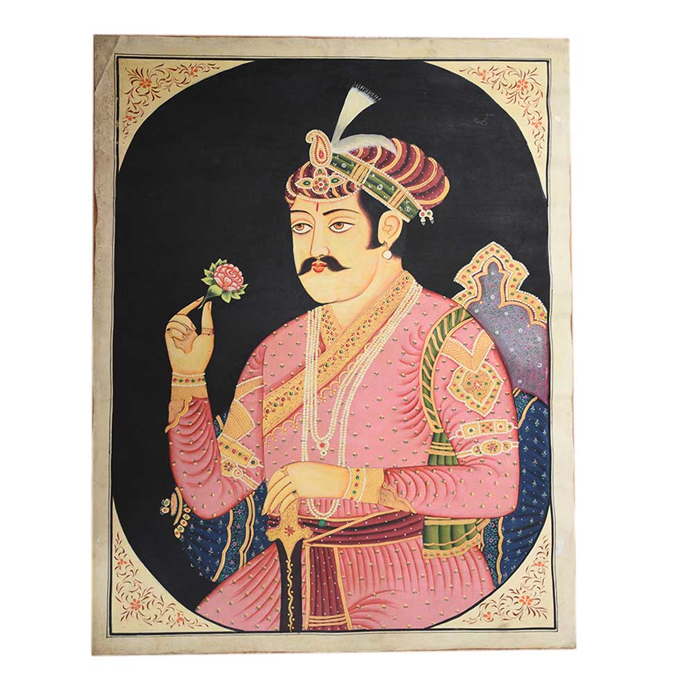 Rare Canvas painting of Mughal emperor Jahangir It can be used for living room, office, home décor and for gifting purposes