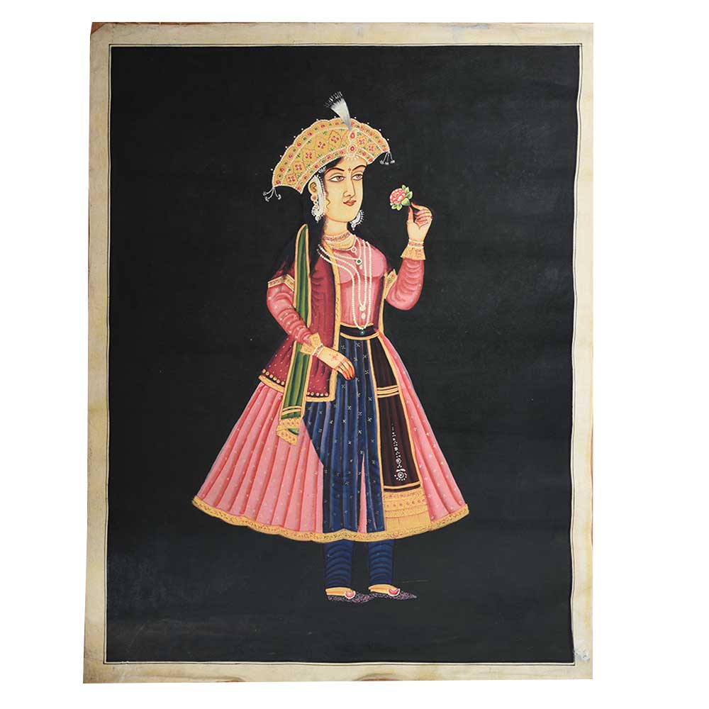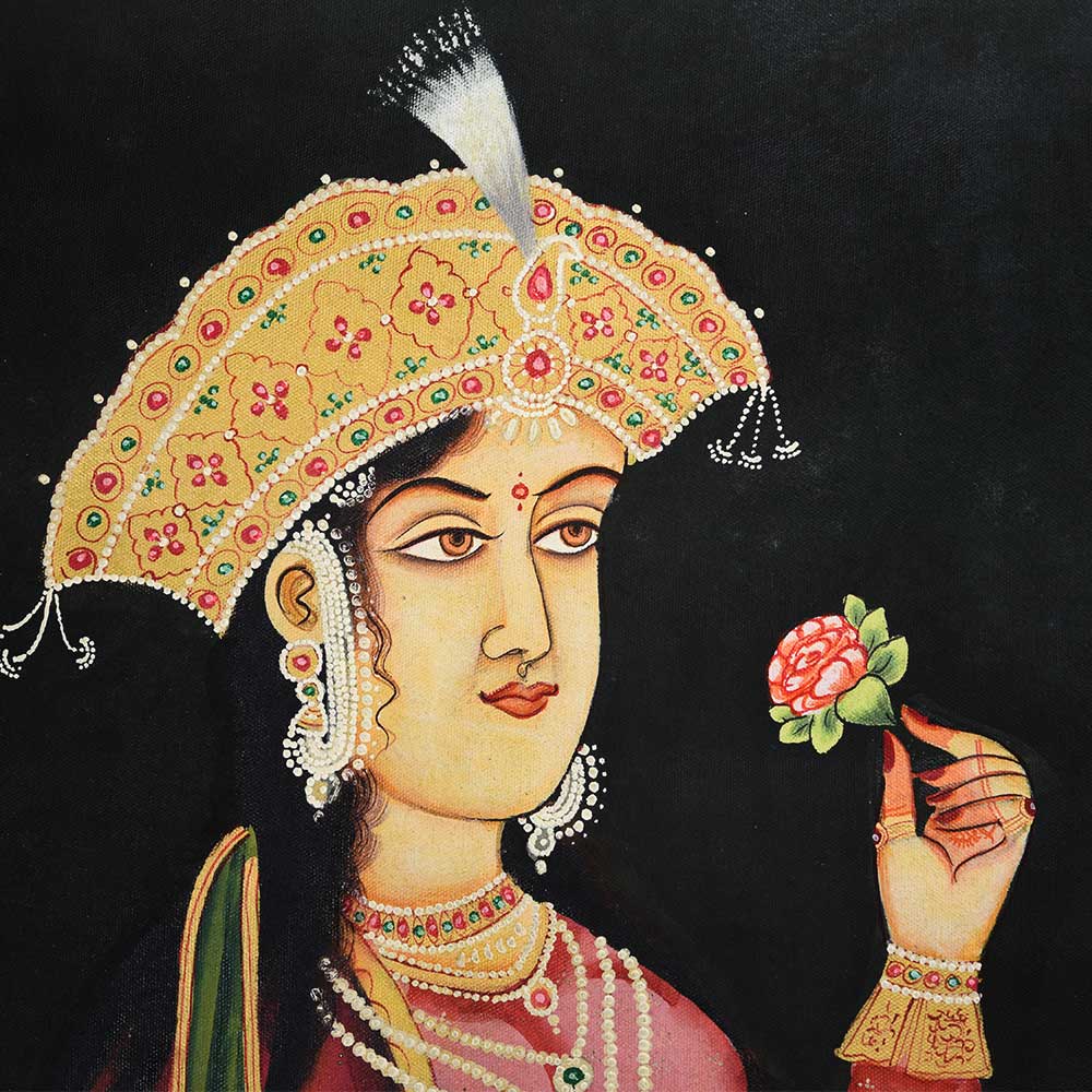 Hand Painted Canvas painting of Mughal empress nur-Jahan with a flower in hand is the perfect gift for your near and dear ones at special functions and festivals.
