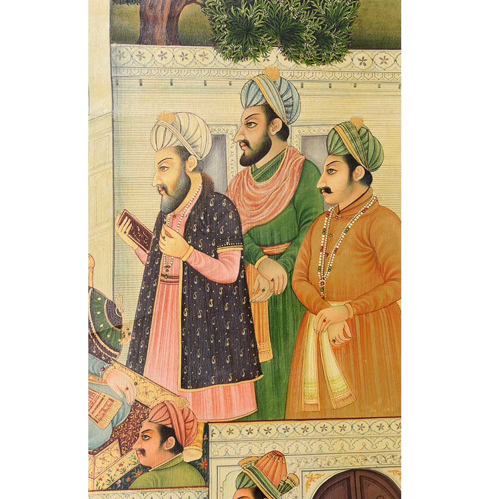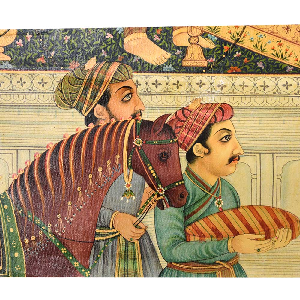 This is an old and unusual painting that is ideal for exhibitions, collections, and gifts. It shows the royal life of the Mughal empire.