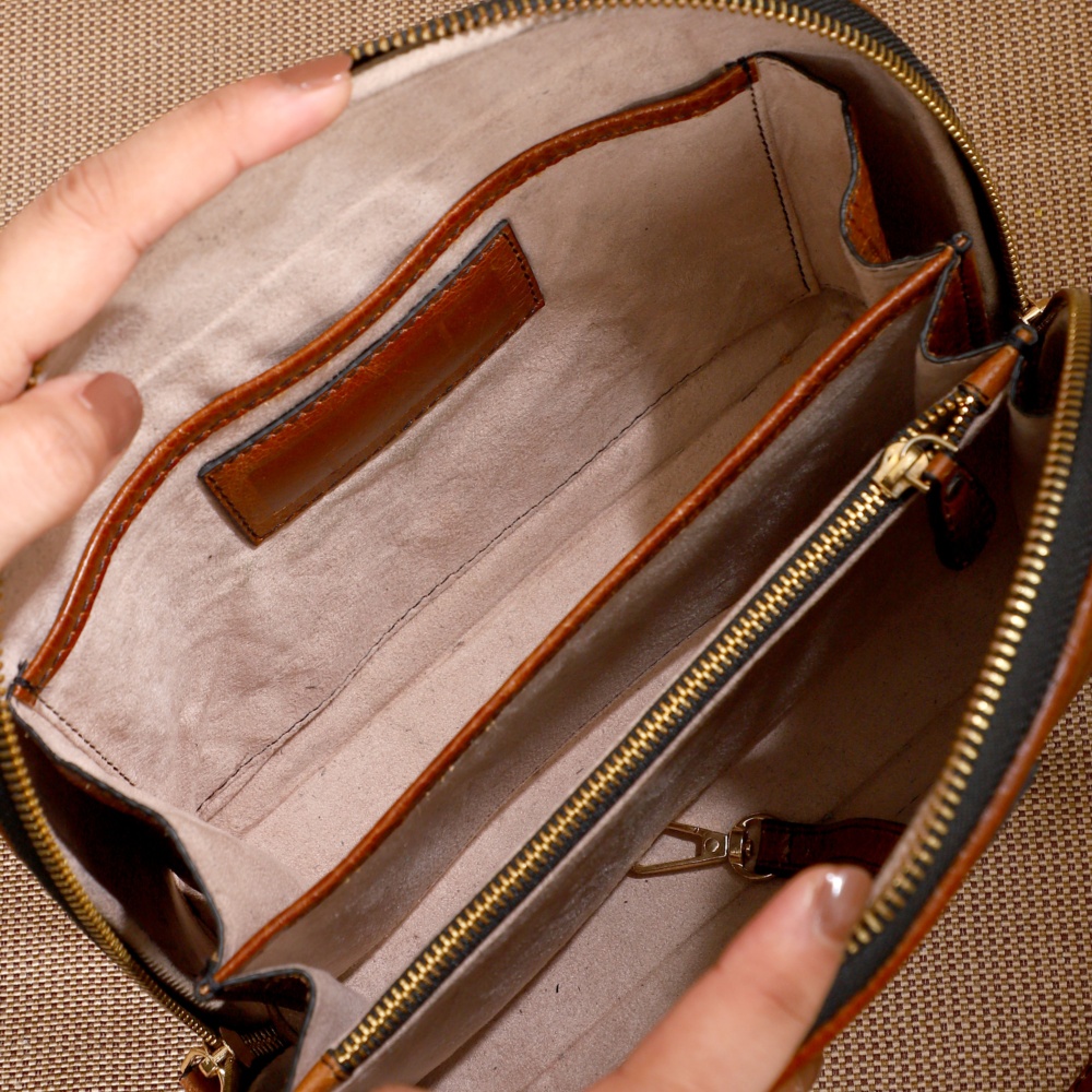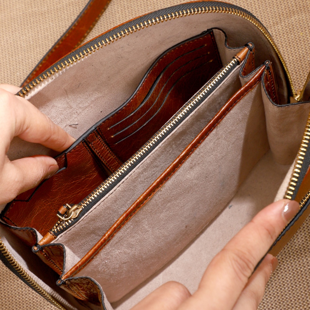 Crafted from lovely Caramel Crunch leather, it features a secure 2-way zipper closure that keeps your essentials safe and within easy reach. Whether you prefer to carry it like a sling or crossbody, you can easily adjust the length to suit your style with the adjustable sling and detachable sling.