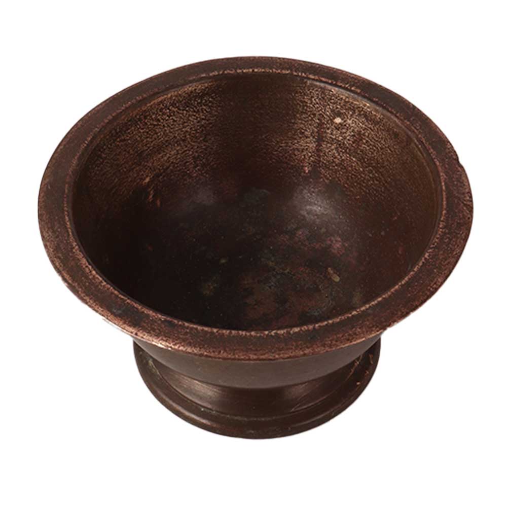 A Censer Incense brass Bowls on a pedestal is a decorative and functional piece commonly used in temples and other religious settings. The censer, typically made of brass, is used to burn incense as a form of offering or to create a pleasant aroma. The large punch bowl sits on a pedestal, which raises it off the ground and gives it a more prominent presence. The censer is often decorated with intricate patterns and designs, making it a perfect addition to any traditional or antique-inspired interior decor. The brass material also adds to the traditional and antique look of the piece. Incense metal bowl is an important part of many religious and spiritual practices, and are used to create a sense of peace, calm, and serenity in the temple. They have a ceremonial significance and are often used during worship, meditation, and other religious rituals.