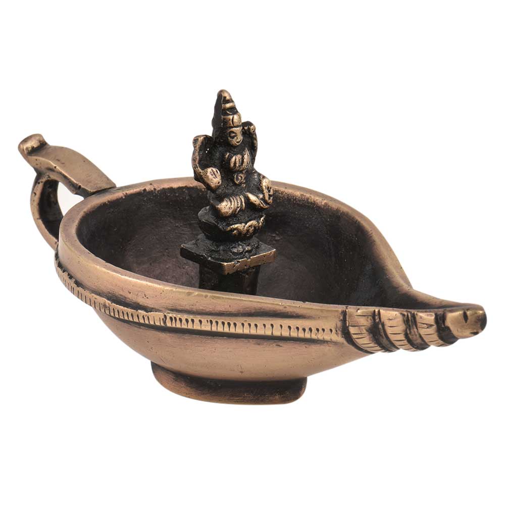 Handmade Brass Laxmi Oil Lamp has a big diya filled with ghee or oil with a laxmi statue inside the diya in shape of a conch. It is used for home decor,diwali decoration, display in office and school reception area. Gift it to your near and dear ones on auspicious an special functions.