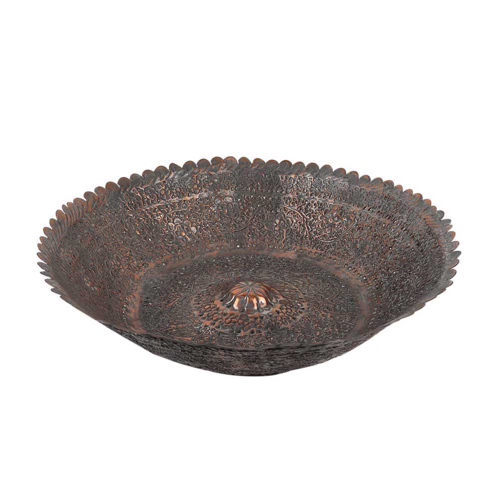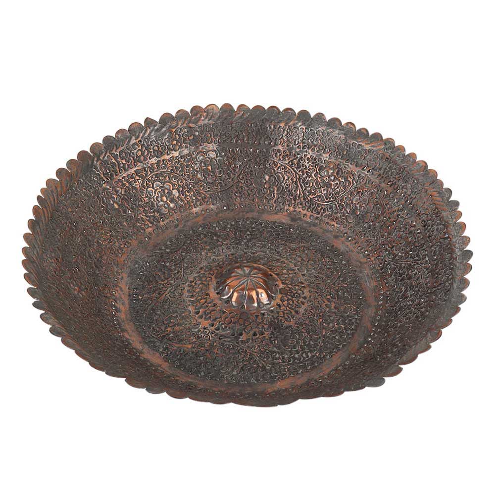 This piece is a beautiful vintage copper bowl made by the expert artisans and craftsmen of India. It's handmade and engraved with a flower pattern and leafy pattern all over the surface of the cup. The pattern is seen on the rim as well as the entire cup. The perfect addition to any set or your home kitchen decor