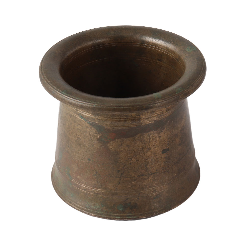 The copper panchpatra, also known as the charan Amrit cup, is an essential feature of poojas. Amrit is deposited in the sacred charan before the pooja and then distributed when the pooja is concluded. It comes in a dark finish.Â