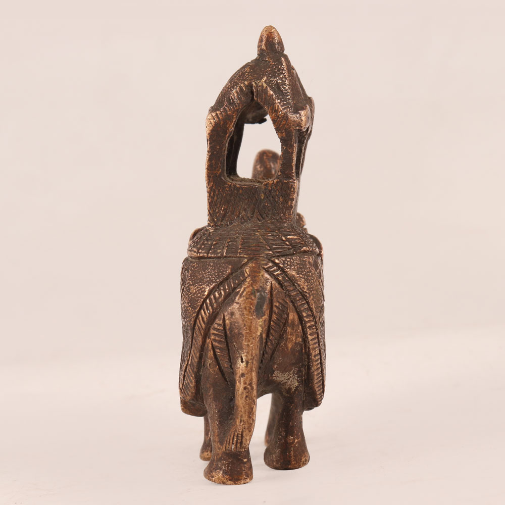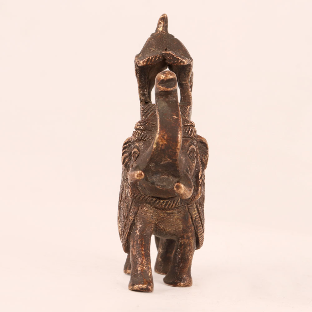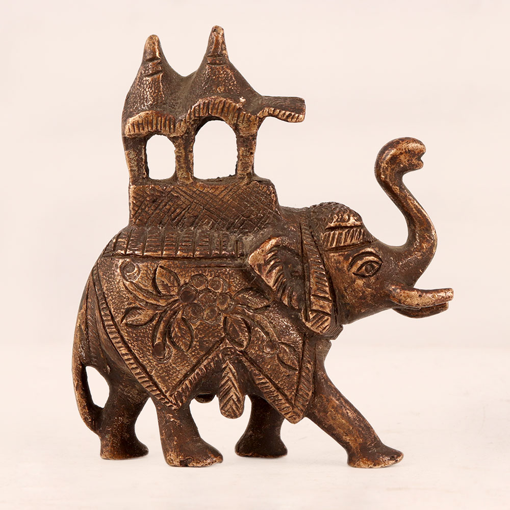 Elevate your space with the timeless elegance of our vintage copper elephant statue, a stunning piece of artistry that pays homage to India's rich cultural heritage. Handcrafted with attention to detail by talented Indian artisans, this exquisite masterpiece boasts an antique brown finish that exudes sophistication and charm. The elephant is adorned with a magnificent howdah, intricately engraved with beautiful designs that showcase the artisan's craftsmanship. Its vintage appeal makes it a versatile addition to any setting, whether it's your home, office, restaurant, hotel, cafe, or shop, instantly adding a touch of opulence and cultural significance to your decor. For collectors of vintage treasures, this copper elephant is a must-have addition to your prized collection, embodying the essence of historical India. Furthermore, it makes for a thoughtful and meaningful gift for your family, friends or relatives on special, festive, or auspicious occasions, symbolizing luck, wisdom, and prosperity.