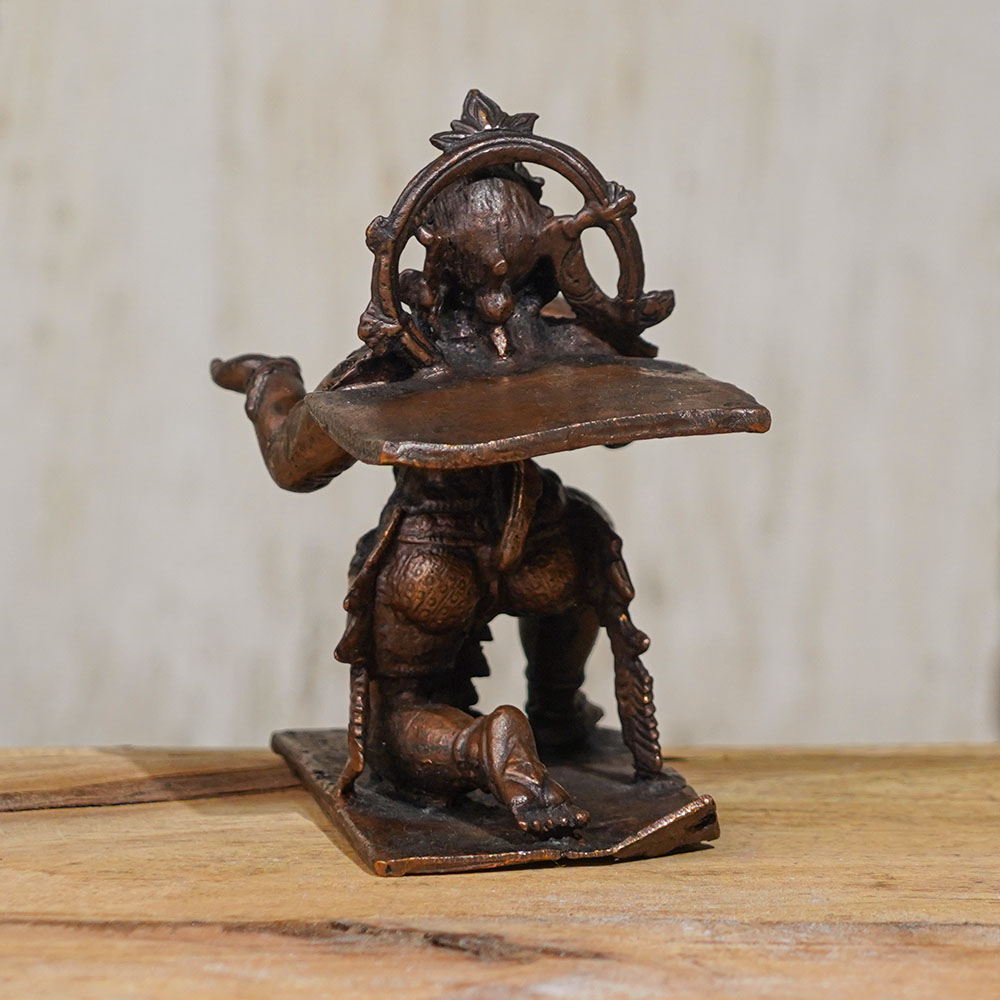 Experience the divine presence of Lord Hanuman with this exquisite copper statue, meticulously handcrafted by skilled Indian artisans. This Lord Hanuman murti is a true masterpiece, featuring intricate details that capture the essence of this revered Hindu deity. This copper statue of Lord Hanuman is perfect for adorning your prayer room, collection, or as a thoughtful gift for your loved ones. Lord Hanuman is a symbol of strength, devotion, and courage, and is widely worshipped in many Indian temples. Made with high-quality copper, this Lord Hanuman idol is not only a sacred symbol for worship, but also a beautiful piece of art that adds grace and elegance to any space. Its exquisite craftsmanship and attention to detail make it a cherished addition to your spiritual practice or home decor. With the option to buy Lord Hanuman statue online, this copper murti is a perfect choice for devotees seeking a divine representation of Lord Hanuman, handcrafted with love and devotion by skilled Indian artisans.