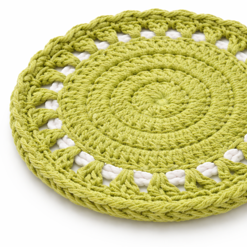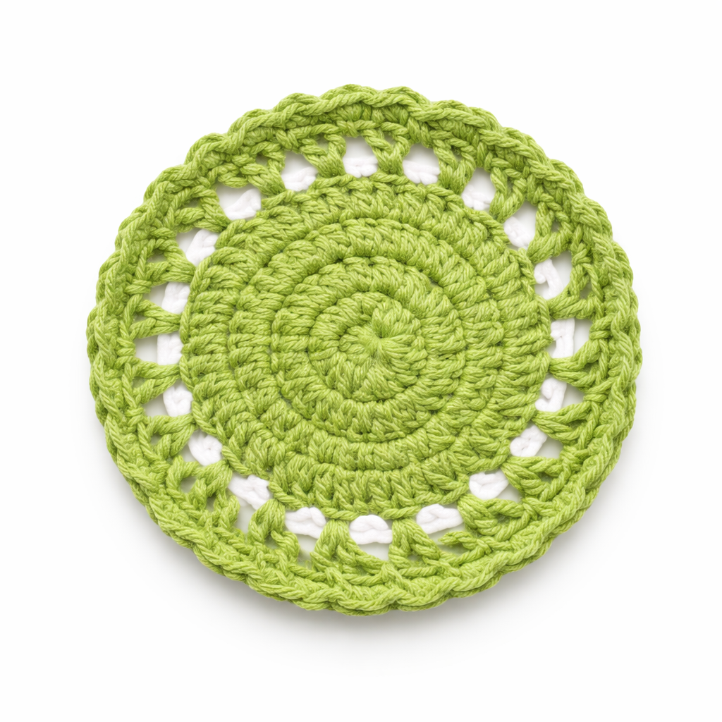 This handcrafted crochet doily coaster is made using soft cotton yarn and features a detailed circular crochet pattern in a fresh green shade. The intricate loops and lace-inspired texture create a balanced combination of beauty and function, protecting surfaces while adding a handmade decorative touch to your table. Product Highlights Handmade crochet doily coaster made from cotton yarn Elegant round crochet lace pattern Fresh green tone suitable for modern and natural home decor Protects table surfaces from heat, stains, and cup marks Handcrafted table accessory for everyday use Material and Craftsmanship Material: Cotton yarn Technique: Hand crocheted Shape: Round Texture: Soft woven crochet lace Finish: Lightweight handmade cotton weave Usage Ideas Coaster for tea cups, coffee mugs, or glasses Decorative doily for trays or centerpieces Accent piece for dining tables or coffee tables Handmade decorative accessory for kitchen or living room Care Instructions Hand wash gently with mild detergent and air dry to preserve the cotton yarn texture and crochet structure. Frequently Asked Questions What material is used in this crochet doily? This doily coaster is handcrafted from durable and soft cotton yarn. Can this crochet doily be used as a coaster? Yes, it works perfectly as a coaster for cups and mugs while protecting table surfaces. Is every piece exactly identical? No. Since each item is handmade, slight variations may occur, making every piece unique. Where can this crochet doily be used? It can be used on dining tables, coffee tables, kitchen counters, or decorative trays.