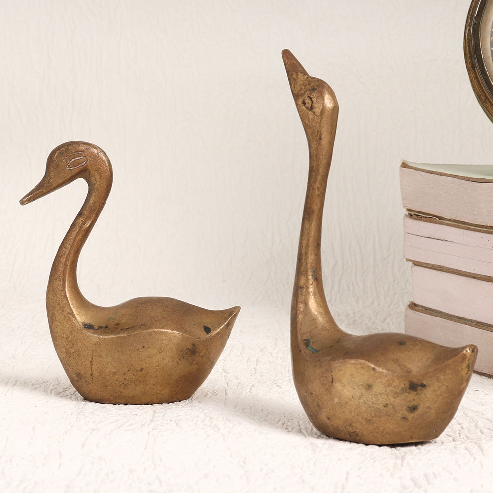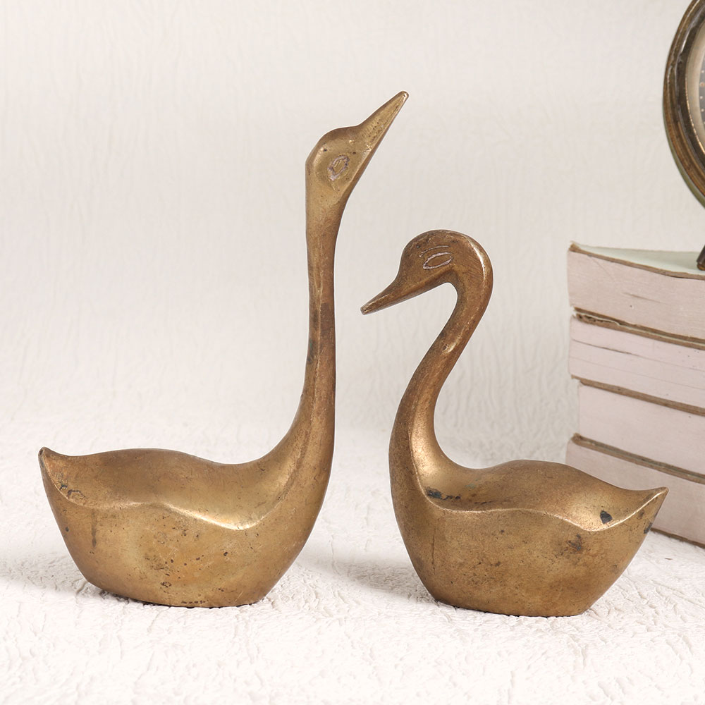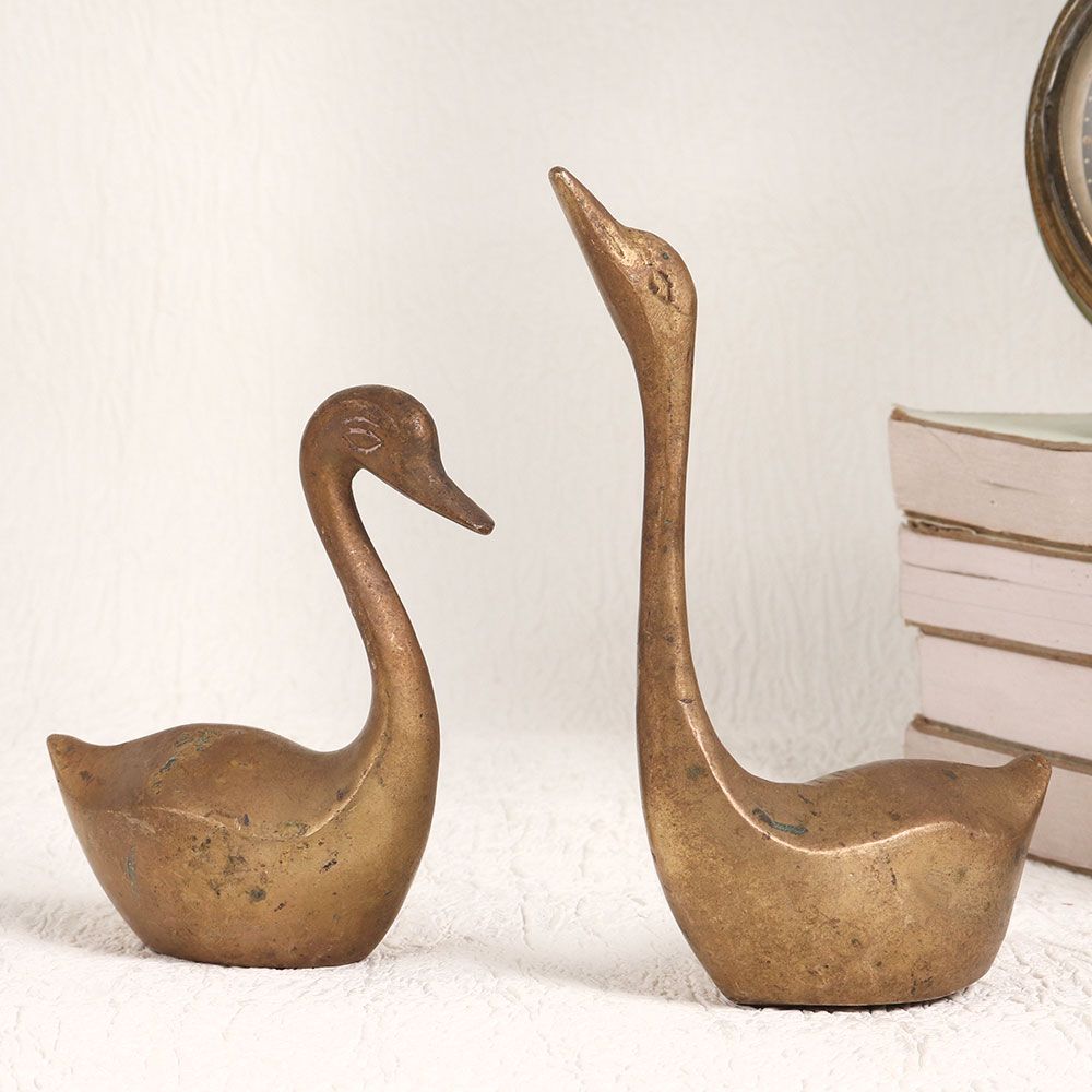 Buy an exquisite brass pair of ducks online in an antique brown finish and get a hassle free delivery right at your doorstep. Crafted with precision and passion by skilled craftsmen, these ducks embody the essence of high-quality craftsmanship. Each duck is meticulously handmade from premium brass, ensuring both durability and a lustrous vintage appearance. The antique brown finish adds an air of sophistication and elegance, making them a versatile addition to any setting. Whether gracing your home, office, restaurant, hotel, cafe, or shop, these ducks serve as an enchanting decoration piece that effortlessly elevates the ambiance. Ideal for vintage enthusiasts, they can take pride of place in your collection or enhance your exhibition's charm. Moreover, these ducks make for meaningful gifts on special, festive, or auspicious occasions, symbolizing the enduring bond of love and appreciation. Share the artistry of English craftsmanship with your family, friends or relatives, and let these brass ducks create lasting memories in their hearts.