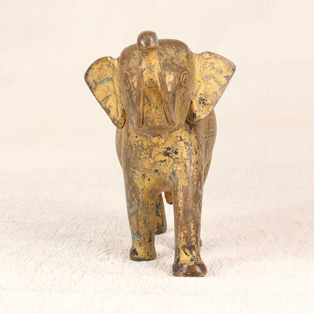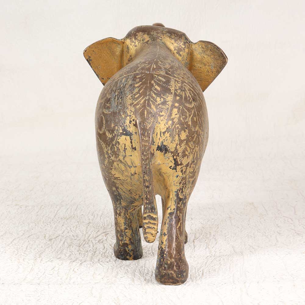 Make a statement with this vintage engraved brass elephant statue, weighing in at a substantial 10 lbs. The intricate detailing transforms this into a true work of art. This is a museum-quality piece that will impress the most discerning elephant aficionado. The ornate engraving covers the body and howdah in mesmerizing designs. An ideal gift for collectors - or a meaningful addition to your own decor. Give your home a majestic focal point that makes an impression. As a coffee table or bookshelf accent, this vintage brass elephant is sure to be a much-admired part of your decor. For elephant lovers seeking something special, this engraved statue is it. Make the statement you want with this substantial, beautifully detailed brass elephant today!