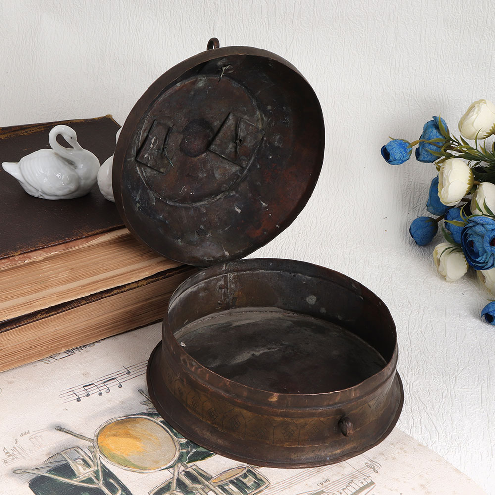 Enhance your interior decor with the timeless charm of our Vintage Brass Jewelry Box. Handmade by highly skilled and experienced Indian craftsmen, this exquisite piece showcases the rich heritage of craftsmanship passed down through generations. Made from high-quality brass, it exudes durability and elegance. The antique brown finish lends an air of authenticity and the intricate engravings on the surface tell stories of India's cultural richness. A sturdy latch and a convenient handle make it both functional and stylish. This versatile jewelry box is more than just storage, it's a work of art. Whether adorning your home, office, restaurant, hotel, cafe, or shop, it adds a touch of sophistication. Use it to store your precious stones, jewelry, or treasured mementos, adding an aura of opulence to your space. For collectors and exhibitors, it's a must-have piece to showcase at exhibitions. And for special occasions, be it festivals, auspicious events, or moments of love, gifting this brass jewelry box is a gesture of timeless beauty and tradition.