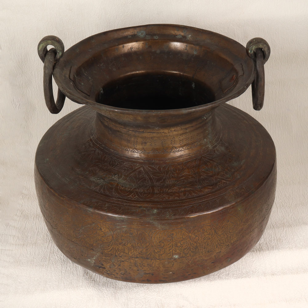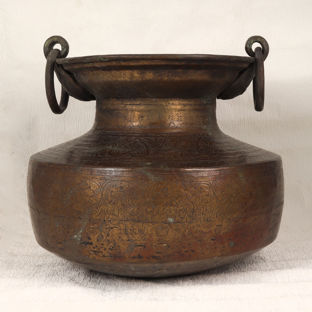 Indulge in the timeless charm of our Vintage Brass Water Pot which is a magnificent piece adorned with exquisite engravings, showcasing the rich heritage of highly skilled Indian artisans from Rajasthan. Handcrafted from premium brass, this unique pot boasts a distinctive antique brown finish that adds an air of sophistication to any setting. Featuring two gracefully curved handles, this water pot not only exudes vintage allure but also offers practicality and ease of use. Its versatile design makes it a perfect addition to various spaces, be it your home, office, restaurant, hotel, or cafe. Embrace its dual functionality by transforming it into an indoor flower pot, infusing your surroundings with a touch of nature and elegance. Beyond its aesthetic appeal, this brass masterpiece serves as an ideal collector's item, contributing to a curated vintage collection. Elevate your space with a piece that effortlessly marries history with artistry. As a thoughtful gesture, consider gifting this exquisite water pot to your family, friends or relatives on special, festive, or auspicious occasions, allowing them to cherish the craftsmanship and cultural significance embedded in every detail.
