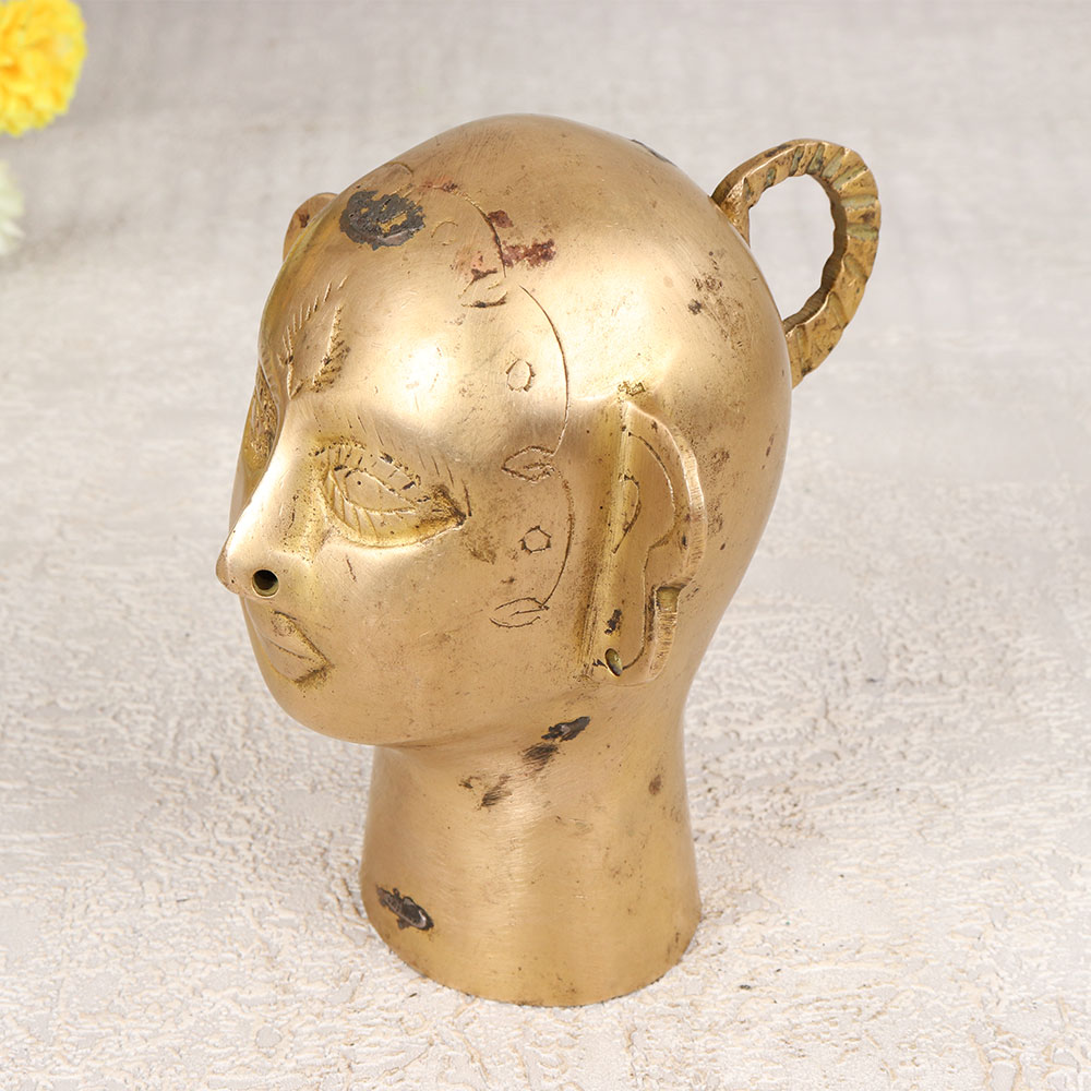 Enhance your spiritual space with the timeless elegance of this vintage White Brass Gauri Head, embodying the divine essence of Goddess Parvati. Handmade with precision by professional Indian artisans from Gujarat, this exquisite piece boasts a lustrous golden finish, adding a touch of opulence to any environment. Meticulously crafted from high-quality white Brass, it seamlessly merges artistic craftsmanship with spiritual significance. This Gauri Head is a versatile addition to your sacred sanctuaries, be it at home, office, restaurant, hotel, or cafe prayer room. Its captivating presence extends beyond religious spaces, making it a sophisticated decor piece for various settings. A testament to timeless beauty, this artefact beckons to be part of your vintage collection, enriching your surroundings with its cultural and aesthetic charm. Perfect for special, festive, or auspicious occasions, this handmade masterpiece also serves as an impeccable gift, allowing you to share the divine blessings and artistic richness with your family, friends or relatives.