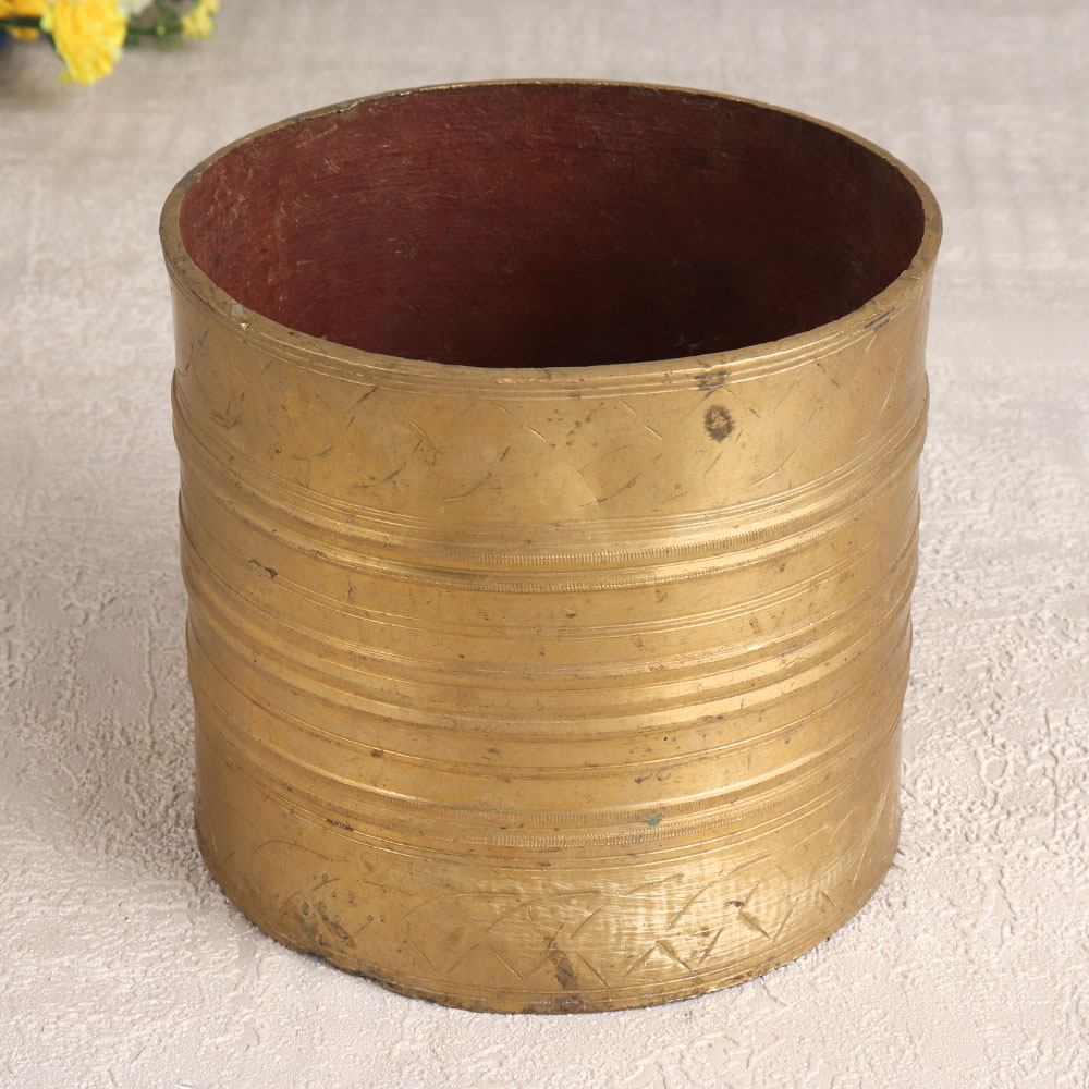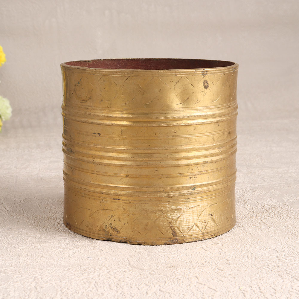 Experience the timeless allure of a Vintage Brass Pot which is a true masterpiece crafted by highly skilled and experienced Indian artisans, inspired by the rich traditions of South Indian art. This exquisite piece features a charming antique brown finish, adding an aura of rustic elegance to any setting. Handmade with the utmost precision and using high-quality brass, this pot serves not only as a measurement bowl but also as a stunning decor piece. It lends an air of sophistication and nostalgia to your home, office, hotel, cafe, shop, or restaurant. Placed on a table top or shelf, it transforms into an enchanting indoor flower pot, gracing your space with natural beauty. This vintage brass pot is a collector's dream, perfect for those with a penchant for antiquities. It can take pride of place in exhibitions, showcasing the rich craftsmanship of India's heritage. Furthermore, it makes a heart-warming gift for your family, friends or relatives on special, festive, or auspicious occasions, symbolizing timeless love and appreciation.