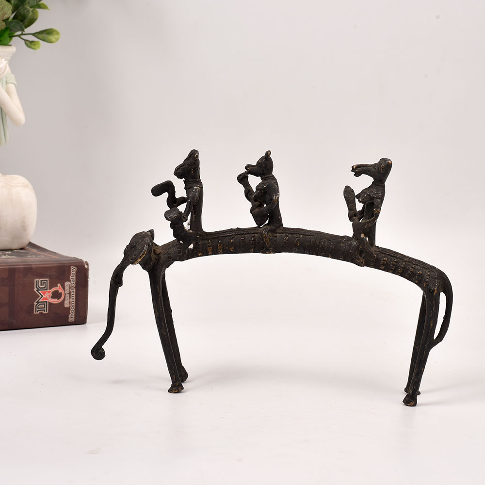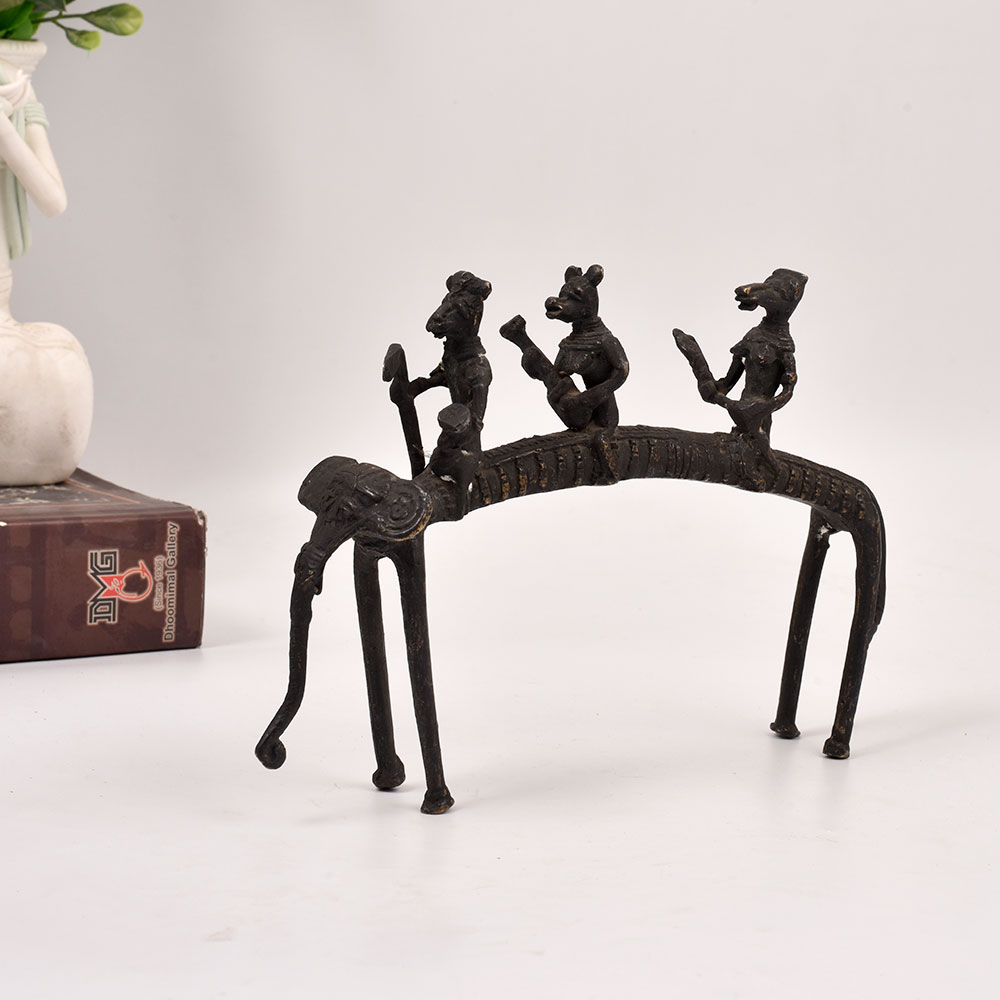 Embark on a journey through time and culture with the Vintage Brass Elephant with Three Riders, a mesmerizing work of tribal art that commands attention. Crafted with unparalleled skill, this one-of-a-kind piece blends the majestic presence of the elephant with the intricate artistry of its three riders, creating a stunning display that will captivate and inspire. This Vintage Brass Elephant with Three Riders is more than just a decorative accent - it's a work of art that tells a captivating story. Imagine the legends and traditions it represents, passed down through generations in distant lands. Display it proudly, and let it transport you to a world of wonder and cultural richness. Whether you're a passionate collector or simply seeking to add a touch of exotic elegance to your home, this brass elephant is a must-have. It's a captivating conversation piece that will elevate your space and ignite the imagination, inspiring awe and admiration in all who behold it. Embrace the majesty of the wild and the artistry of the ancient with this stunning tribal sculpture, and let it become a cherished part of your home.