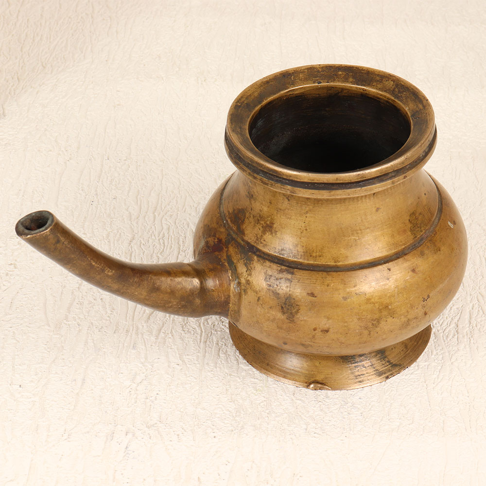 Evoke the sacred beauty of a bygone era with this stunning vintage brass holy water pot. Lovingly crafted from solid brass, this pot features an elegant spout for easy dispensing. Allow yourself to be transported to quiet moments of spiritual contemplation as you adorn your home with this brass masterpiece. Designed to contain and dispense holy water reverently, this pot conjures up images of whispered prayers and gilded sanctuaries, inviting you to create an oasis of peace. Perfect for those looking to add a touch of sacred charm to their home decor, this vintage brass pot will provide a meaningful focal point whether placed beside your front door, on the family altar or anywhere you wish to be reminded of enduring faith. Give your home a whisper of the divine with this brass holy water pot.