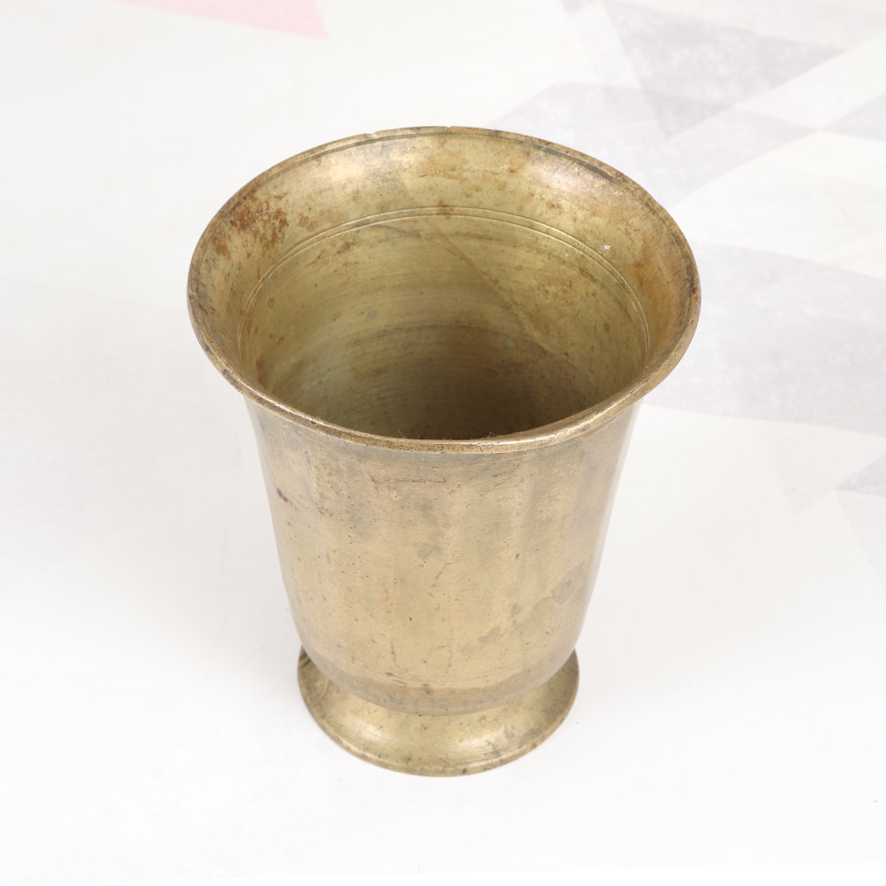 Immerse yourself in the rich tapestry of South Indian spirituality with this captivating brass holy water cup. Crafted with meticulous attention to detail, this elegant vessel emanates an aura of reverence that will captivate all who behold it. Elevate your daily practice and décor with the timeless allure of this brass holy water cup. Whether used for cleansing, blessing, or offering, this exquisite piece will transport you to the heart of South Indian tradition, fostering a deeper connection to the divine. Designed to inspire and uplift, this brass holy water cup is a must-have for any devotee seeking to cultivate a more meaningful spiritual journey. Embrace the sacred essence of South India and let this stunning work of art become a cherished centerpiece in your sacred space, imbuing your rituals with a heightened sense of reverence and connection.